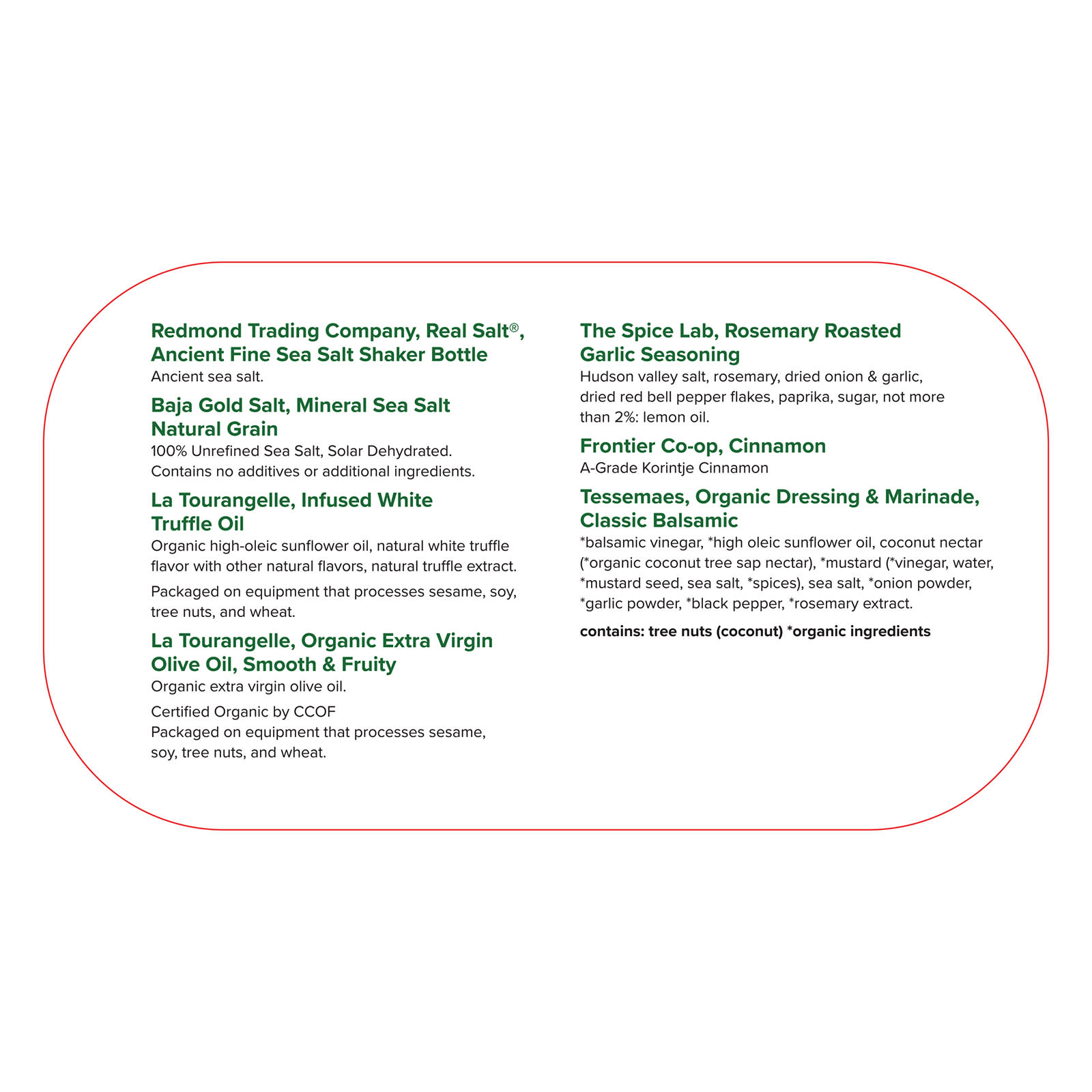 The Spice Lab, приправа с обжаренным чесноком и розмарином. Соль из долины Гудзон, розмарин, сушеный лук и чеснок, хлопья сушеного красного болгарского перца, паприка, сахар, не более 2% лимонного масла.