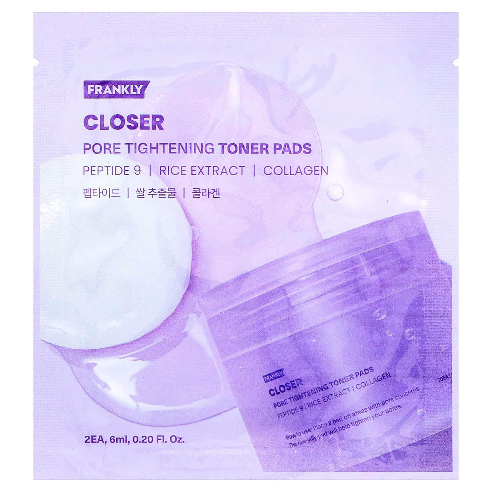 Frankly, тонер-пады для сужения пор. Нанесите пад на проблемные зоны, чтобы рисово-желейный тонер-пад помог сузить поры.