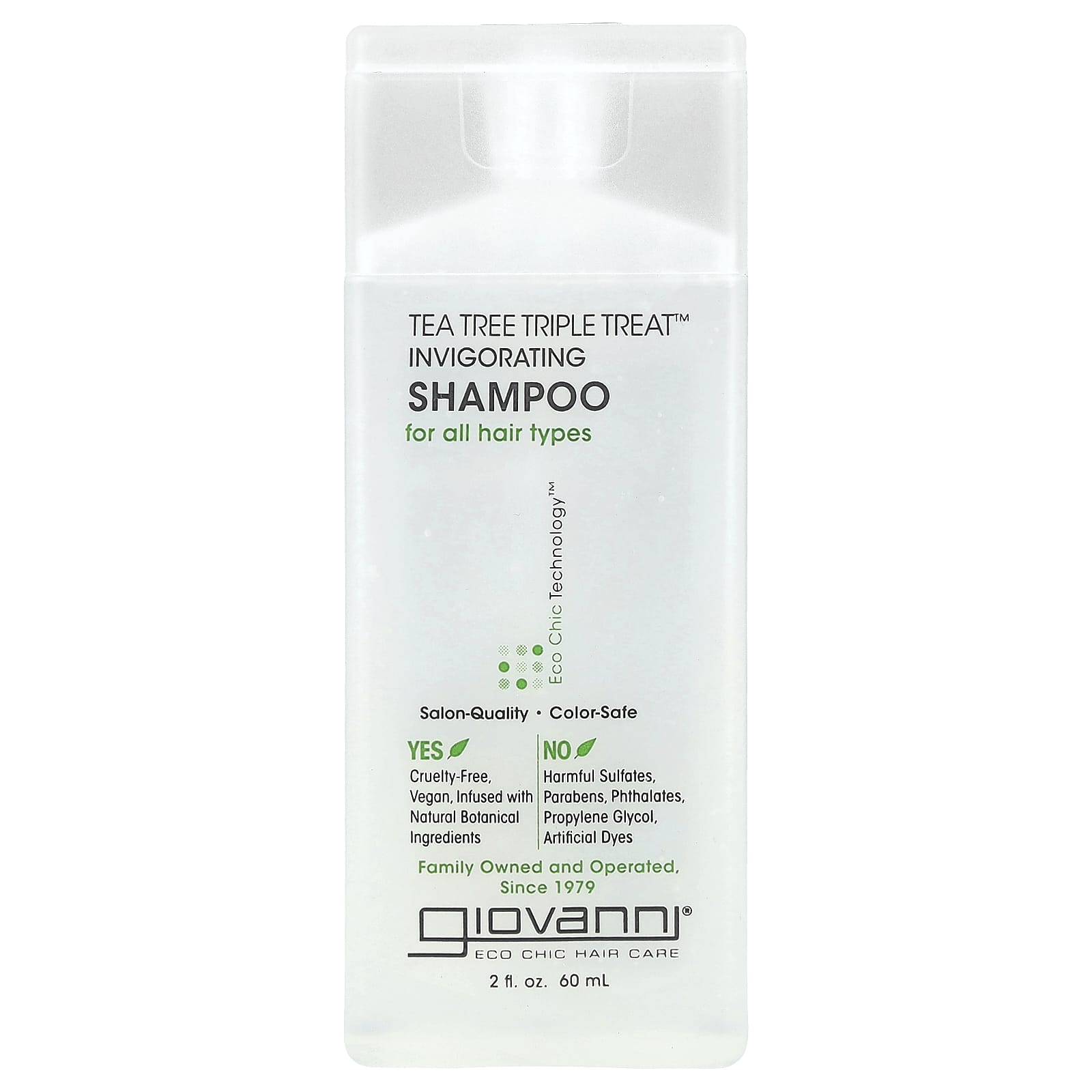 - Giovanni Cosmetics, Tea Tree Triple Treat™, бодрящий шампунь для всех типов волос, 60 мл (2 жидк. унции)
