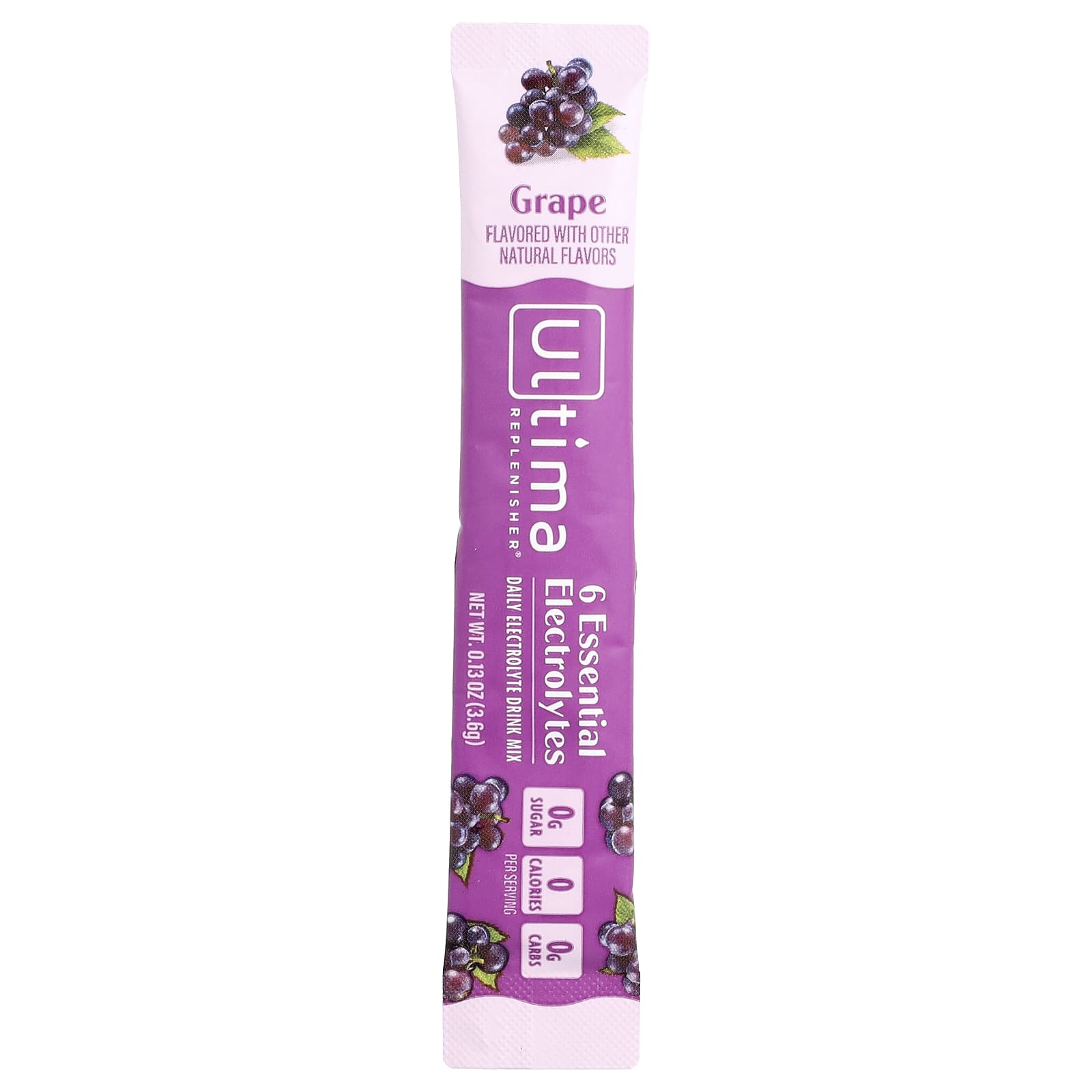 Ultima Replenisher®, смесь электролитов, со вкусом винограда. Добавьте 1 стик в 480 мл (16 жидк. унций) воды. Встряхните или перемешайте. Наслаждайтесь!