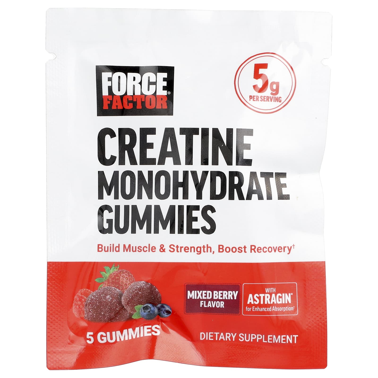 - Force Factor, жевательные таблетки с моногидратом креатина, со вкусом ягодного ассорти, 5 жевательных таблеток