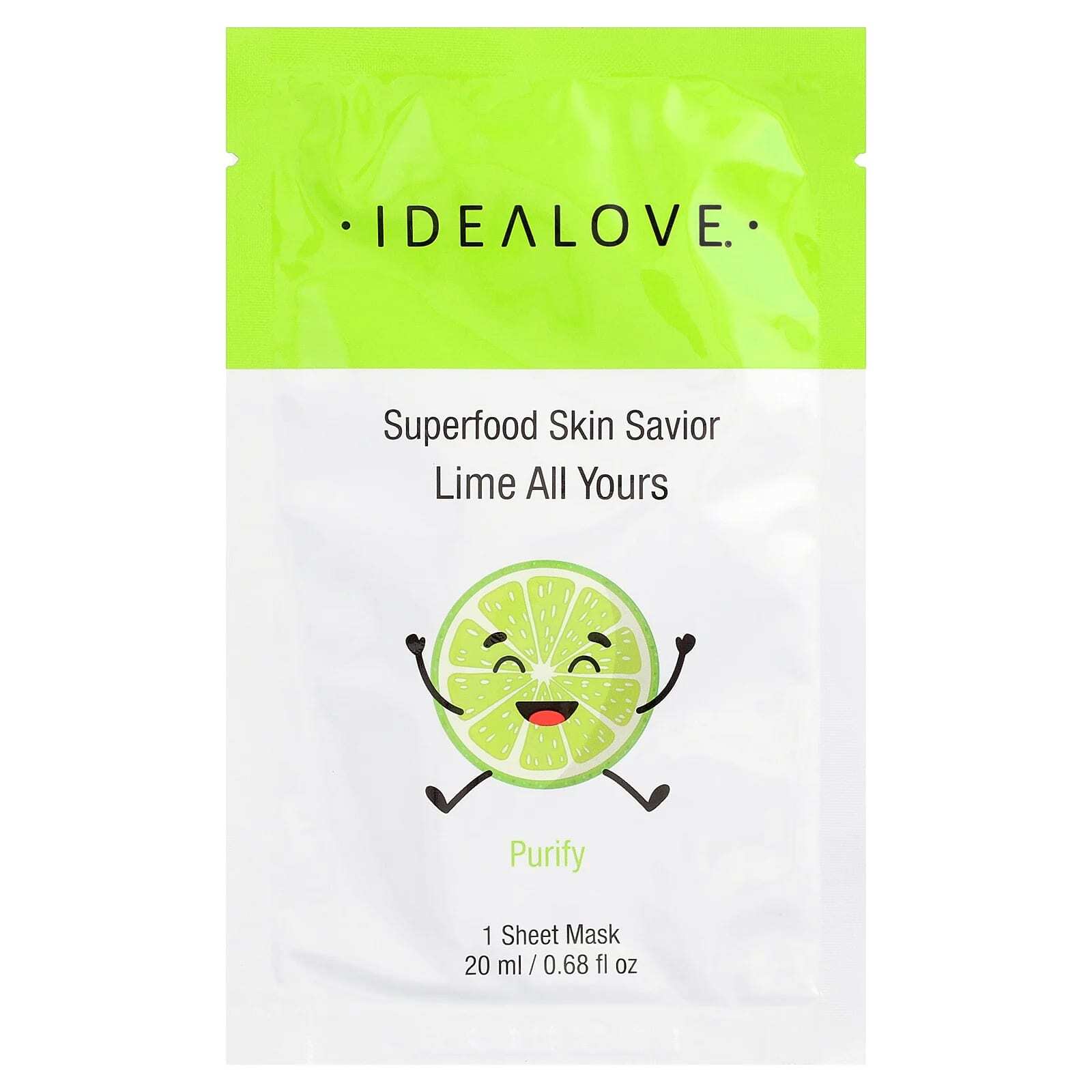 - Idealove, маска для лица с суперфудами, лайм, 1 тканевая маска, 20 мл (0,68 жидк. унции)