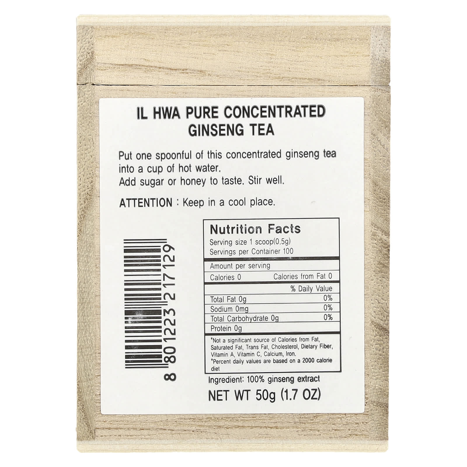 Содержит 100% экстракт женьшеня без добавок. Каждая порция (1 г) содержит 12 мг гинзенозидов Rg1 и Rb1, которые являются 2 основными типами гинзенозидов из женьшеня.