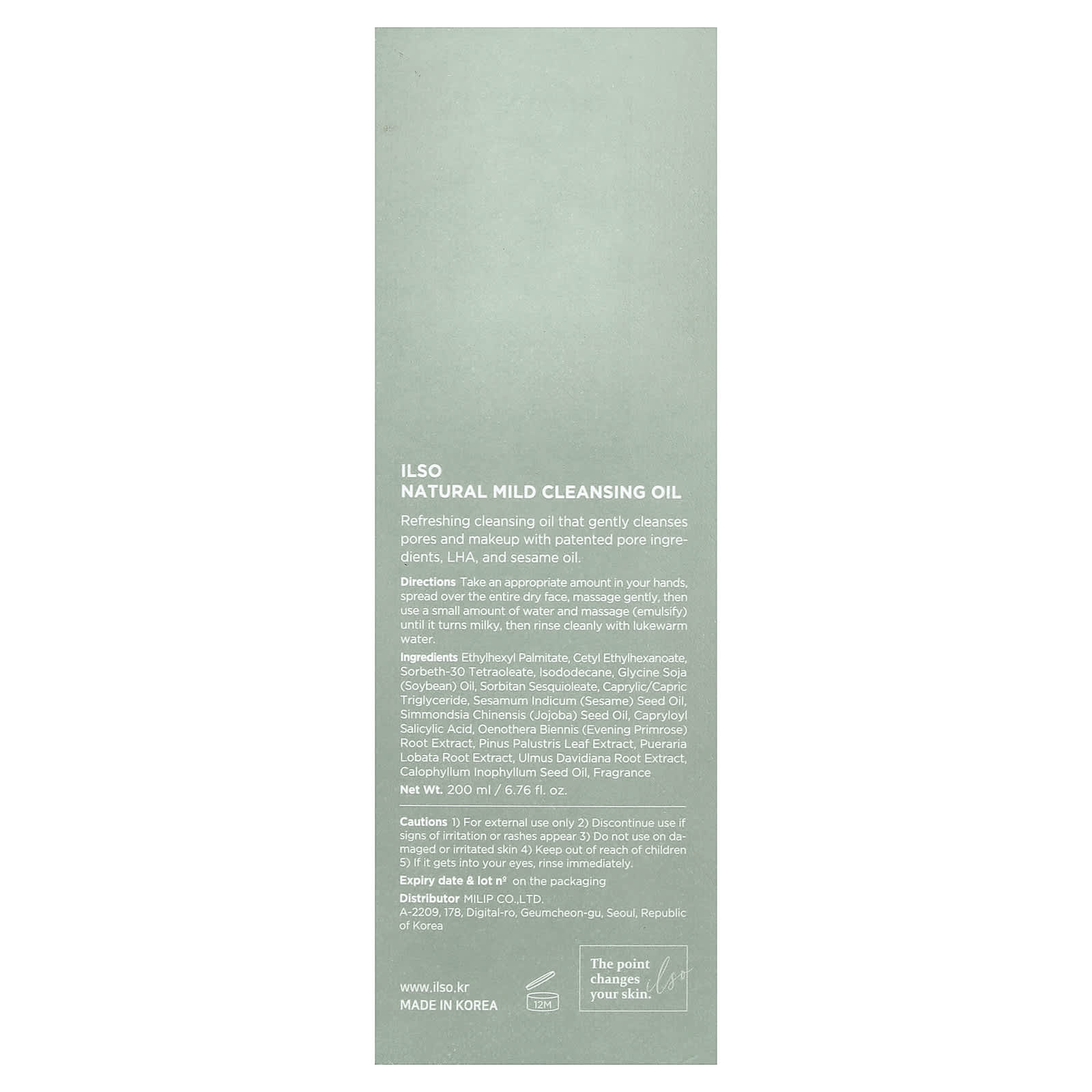 Этилгексил пальмитат, цетилэтилгексаноат, сорбет-30 тетраолеат, изододекан, соевое масло (Glycine soja), сорбитана сесквиолеат, каприловый/каприновый триглицерид, кунжутное масло (Sesamum indicum), масло из семян жожоба (Simmondsia chinensis), каприлоил салициловой кислоты, экстракт корня примулы вечерней (Oenothera biennis), экстракт хвои сосны болотной (Pinus palustris), экстракт корней пуэрарии дольчатой (Pueraria lobata), экстракт корня вяза Давида (Ulmus davidiana), масло семян таману (Calophyllum inophyllum), отдушка.
