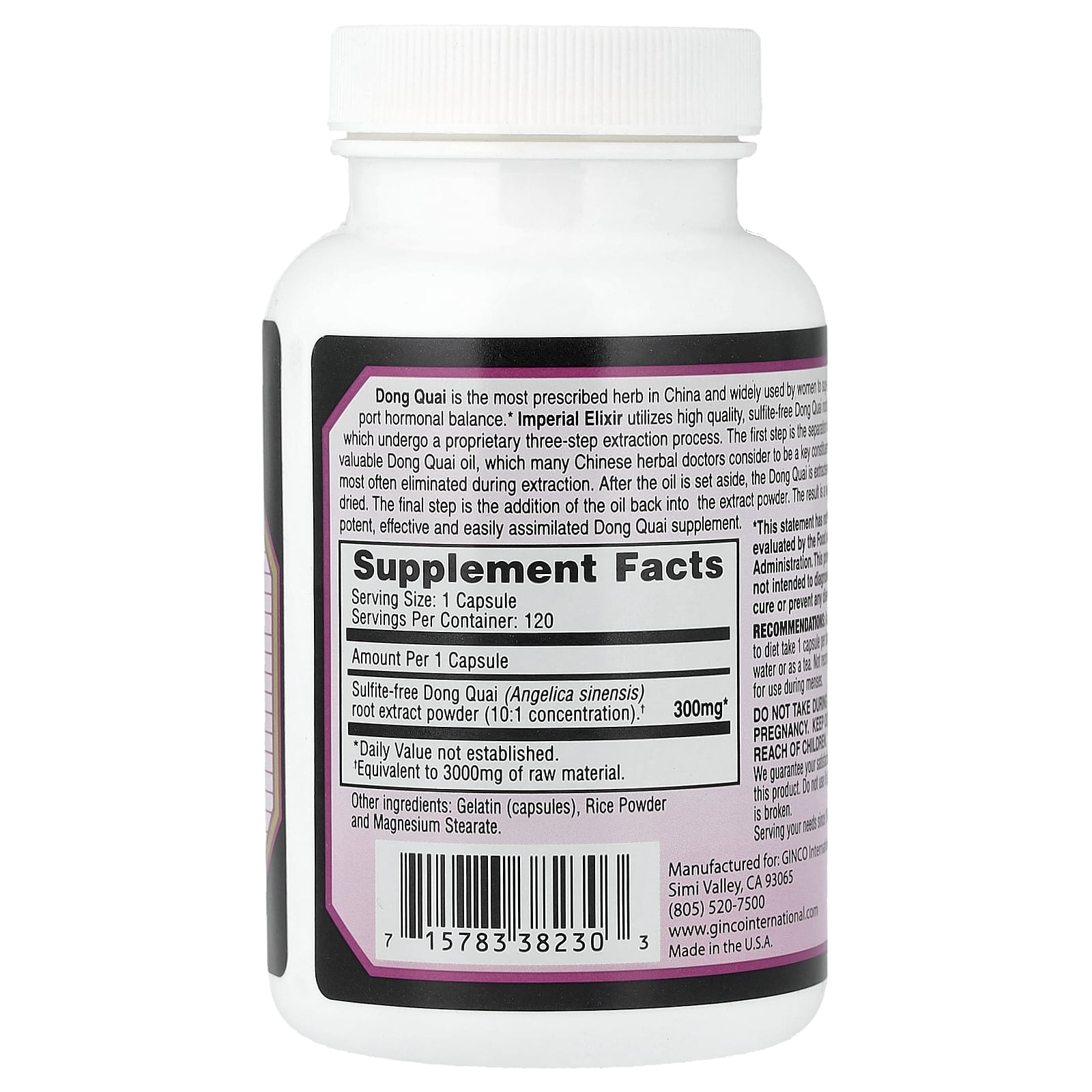 Дягиль лекарственный - самая назначаемая в Китае трава, которая широко используется женщинами для поддержания гормонального баланса. В Imperial Elixir используются высококачественные корни дягиля лекарственного без сульфитов, которые проходят запатентованный трехэтапный процесс экстракции. Первый шаг - это выделение ценного масла дягиля лекарственного, которое многие китайские травники считают ключевым компонентом и чаще всего удаляются в процессе экстракции. После удаления масла дудник извлекают и сушат. Заключительный этап - это добавление масла обратно в порошок экстракта. В результате получается очень мощная, эффективная и легко усваиваемая добавка с дудником китайским.