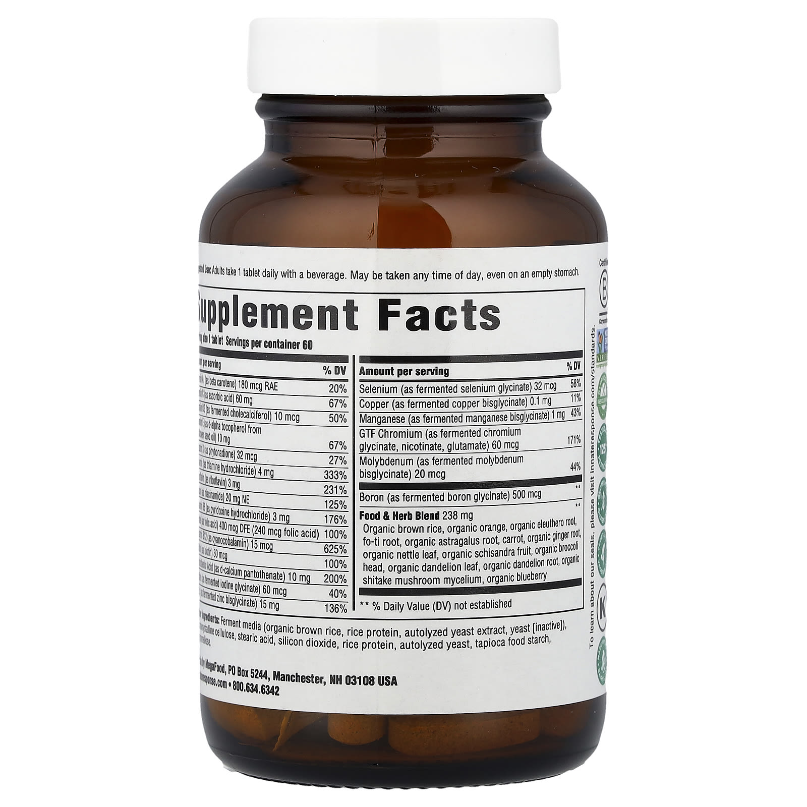 Ферментированная среда (органический коричневый рис, рисовый протеин, автолизированный экстракт дрожжей, дрожжи [неактивные]), микрокристаллическая целлюлоза, стеариновая кислота, диоксид кремния, рисовый протеин, автолизированные дрожжи, тапиоковый пищевой крахмал, гипромеллоза.