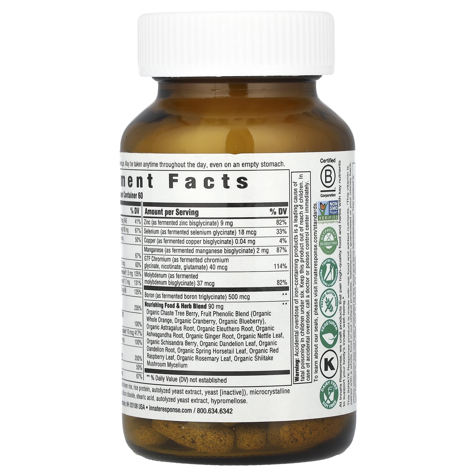 Этот продукт от компании Innate Response изготовлен из натуральных продуктов и добавленных питательных веществ. Этот витамин сочетается с цельными продуктами в нашем уникальном процессе.
