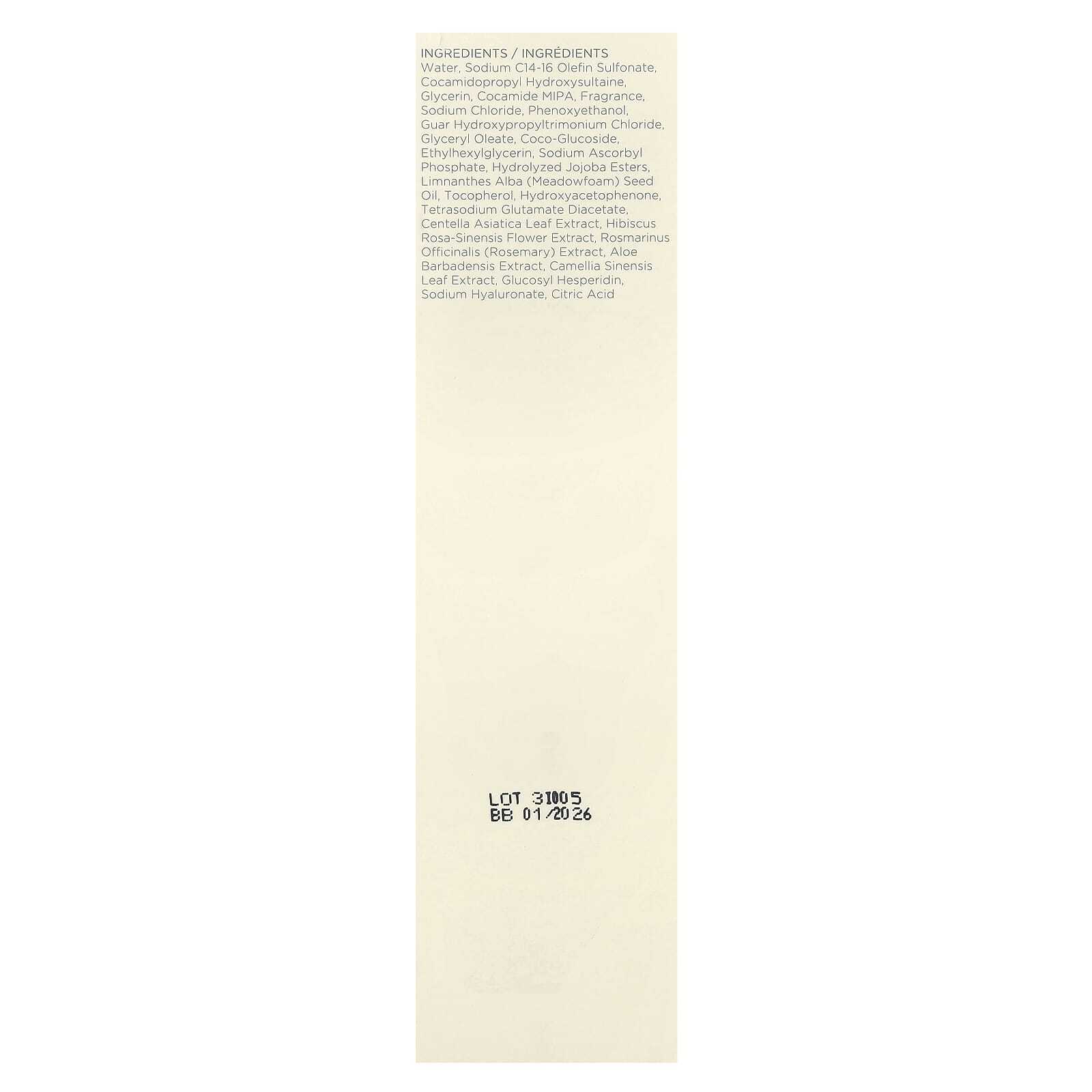 Вода, натрия С14-16 олефин сульфонат, кокамидопропил гидроксисултаин, глицерин, кокамид моноизопропаноламина, отдушка, хлорид натрия, феноксиэтанол, гуар гидроксипропилтримония хлорид, глицерил олеат, кокоглюкозид, этилгексилглицерин, аскорбил фосфат натрия, гидролизованные эфиры жожоба, масло из семян пенника лугового (Limnanthes alba), токоферол, гидроксиацетофенон, диацетат глутамата тетранатрия, экстракт листьев центеллы азиатской, экстракт цветков гибискуса китайского (Hibiscus rosa-sinensis), экстракт розмарина (Rosmarinus officinalis), экстракт алоэ вера, экстракт листьев зеленого чая (Camellia sinensis), глюкозил гесперидин, гиалуронат натрия, лимонная кислота.