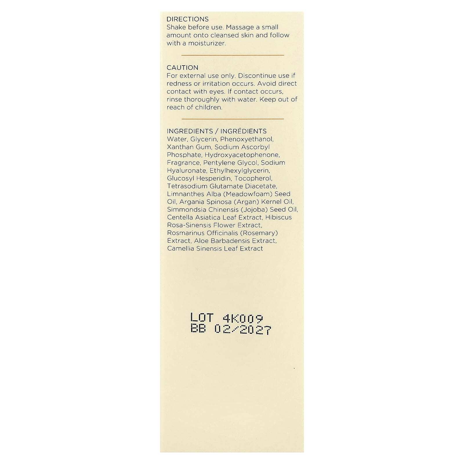 Вода, глицерин, феноксиэтанол, ксантановая камедь, аскорбил фосфат натрия, гидроксиацетофенон, отдушка, пентилен гликоль, гиалуронат натрия, этилгексилглицерин, глюкозил гесперидин, токоферол, диацетат глутамата тетранатрия, масло из семян пенника лугового (Limnanthes alba), аргановое масло (Argania spinosa), масло из семян жожоба (Simmondsia chinensis), экстракт листьев готу колы (Centella asiatica), экстракт цветков гибискуса китайского (Hibiscus rosa-sinensis), экстракт розмарина (Rosmarinus officinalis), экстракт алоэ вера (Aloe barbadensis), экстракт листьев зеленого чая (Camellia sinensis).