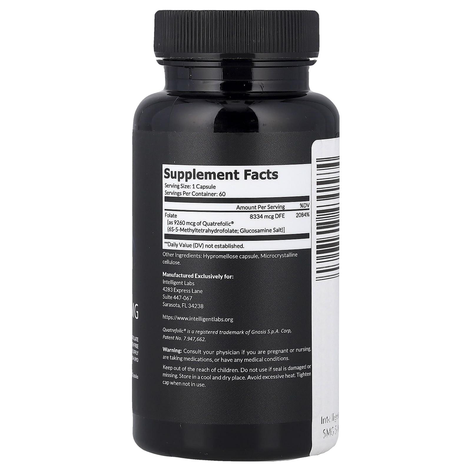 | Фолат [в виде 9260 мкг Quatrefolic® (6S-5-метилтетрагидрофолата; соли глюкозамина)] | 8334 мкг DFE | 2084% |