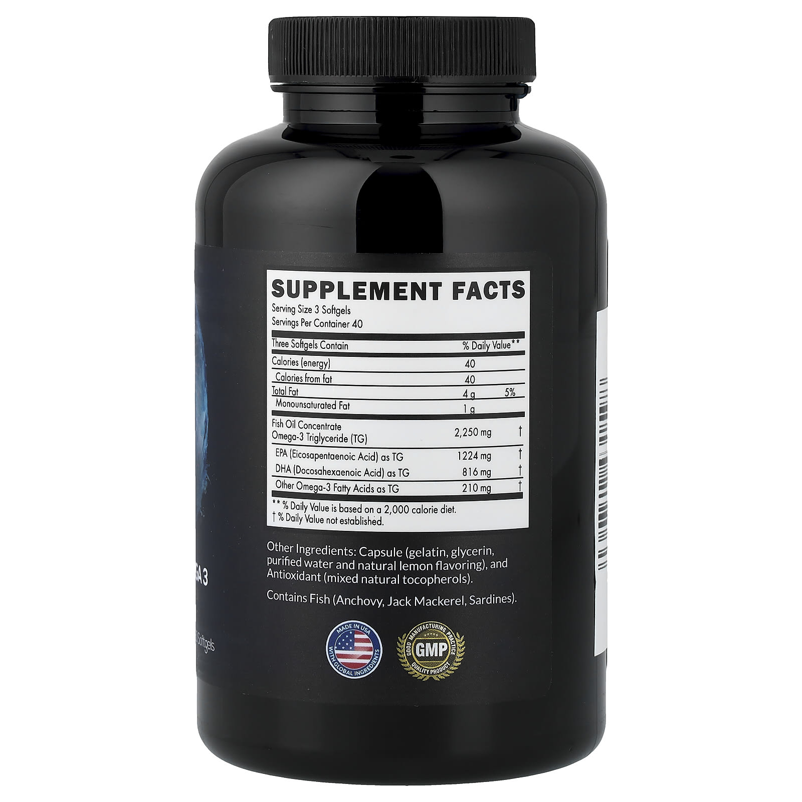 Порция нашей добавки с омега-3 Ultra Pure содержит 1224 мг ЭПК, 816 мг ДГК и 210 мг других жирных кислот TG, что в общей сложности 2250 мг рыбьего жира высочайшего качества!