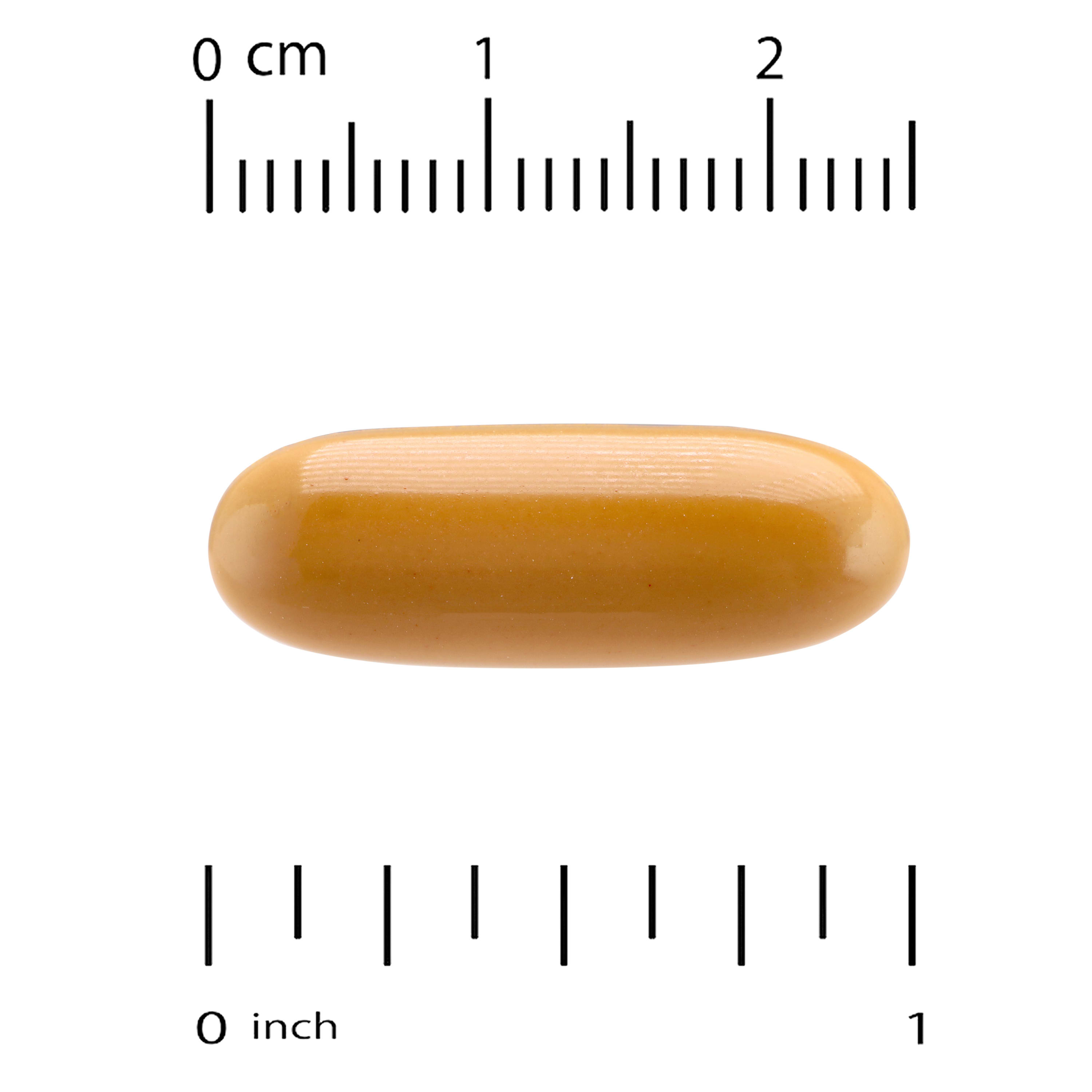 Желатин, очищенная вода, глицерин, мальтодекстрин, соевый лецитин, пчелиный воск, декстрин, аннато (краситель), диоксид титана (краситель), ул. Хлеб Джонса (рожковое дерево) (краситель), куркума (краситель) и диоксид кремния.