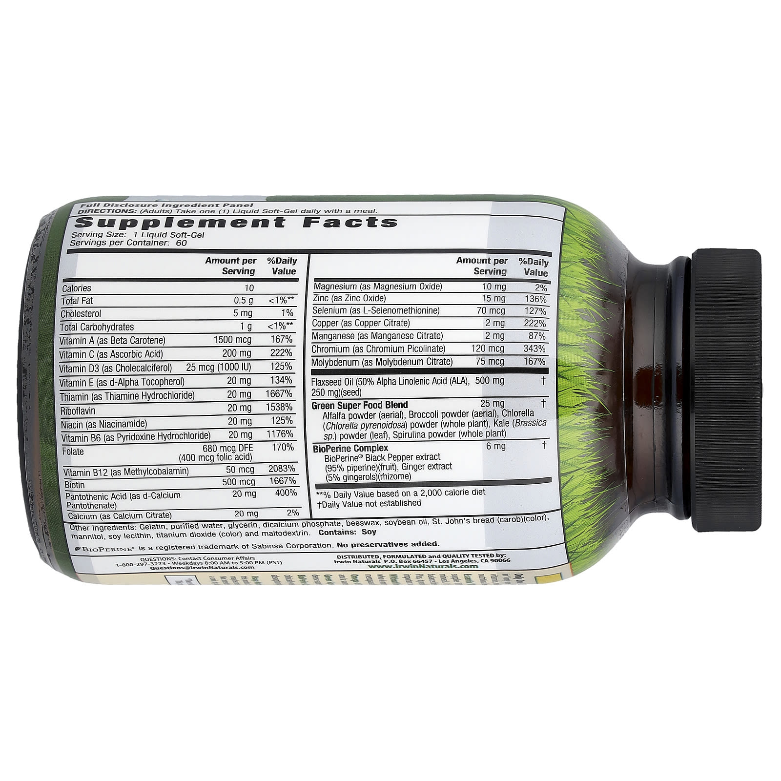Комплекс BioPerine: Все продукты Irwin Naturals® содержат запатентованный и клинически исследованный экстракт черного перца, который, как было доказано, увеличивает усвоение многих питательных веществ.