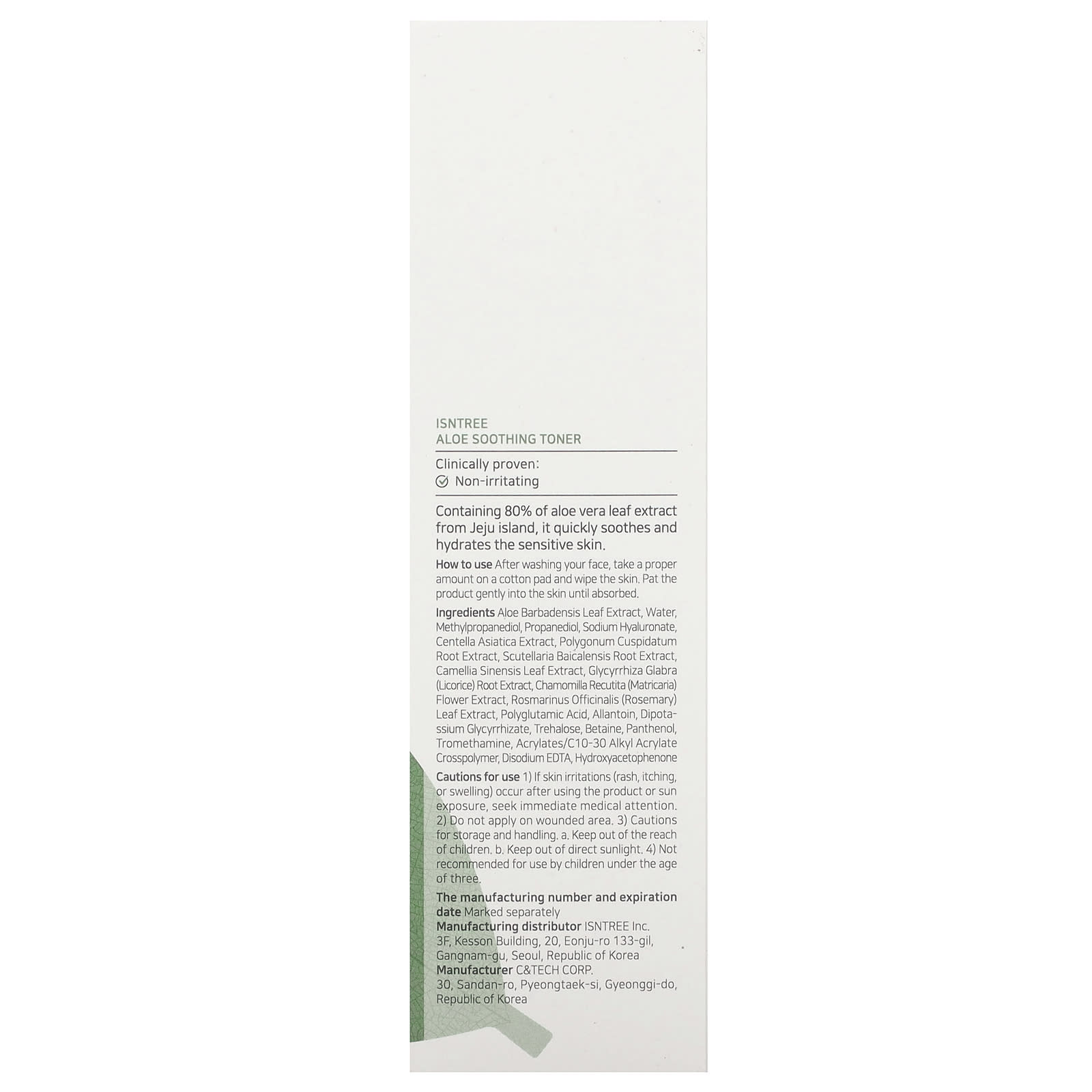 Содержит 80% экстракта листьев алоэ вера с острова Чеджу, быстро успокаивает и увлажняет чувствительную кожу.
