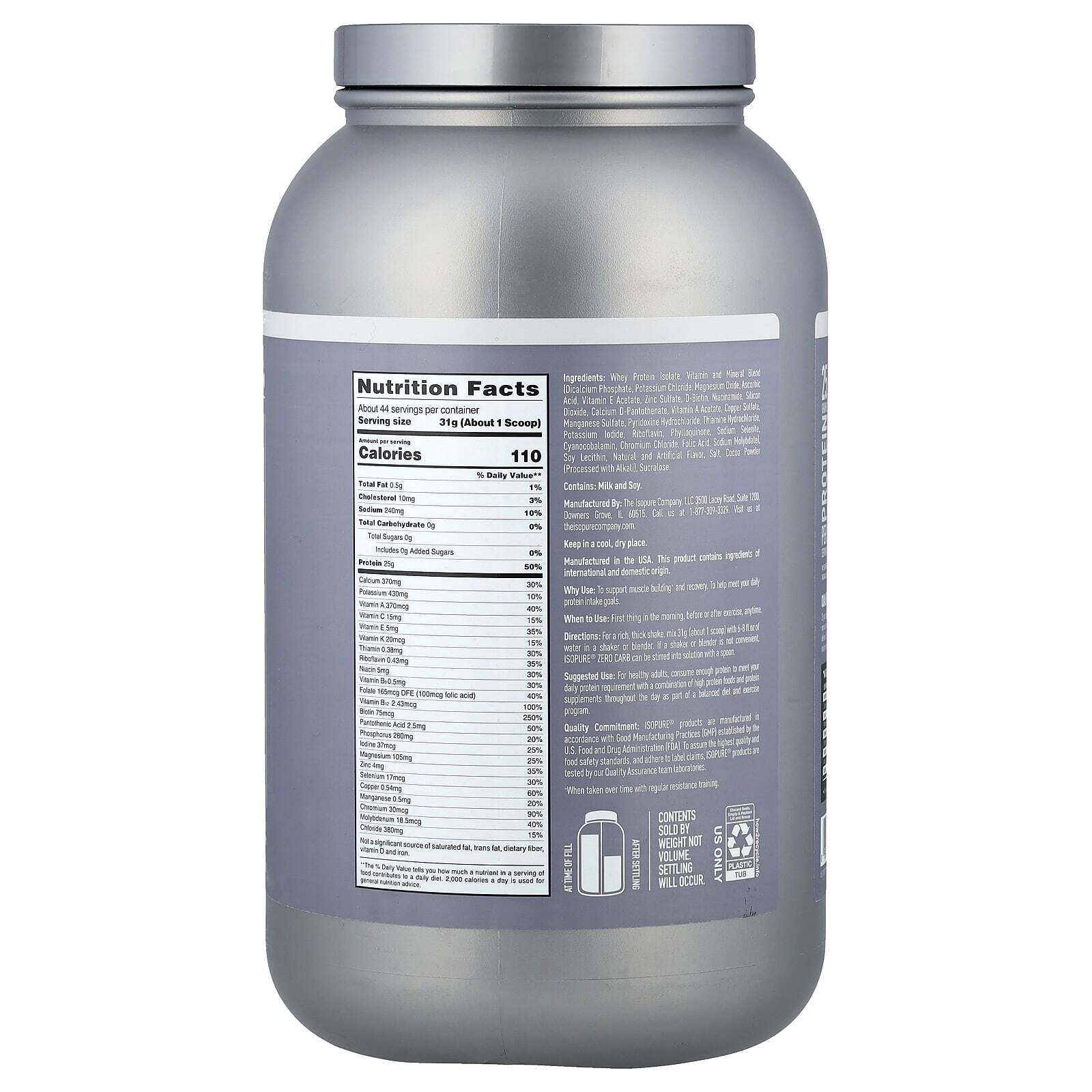Изолят сывороточного протеина, смесь витаминов и минералов (дикальций фосфат, хлорид калия, оксид магния, аскорбиновая кислота, ацетат витамина E, сульфат цинка, d-биотин, никотинамид, диоксид кремния, d-пантотенат кальция, ацетат витамина A, сульфат меди, сульфат марганца, пиридоксина гидрохлорид, тиамина гидрохлорид, йодид калия, рибофлавин, филлохинон, селенит натрия, цианокобаламин, хлорид хрома, фолиевая кислота, молибдат натрия). соевый лецитин, натуральные и искусственные ароматизаторы, соль, какао-порошок (обработанный щёлочью), сукралоза.