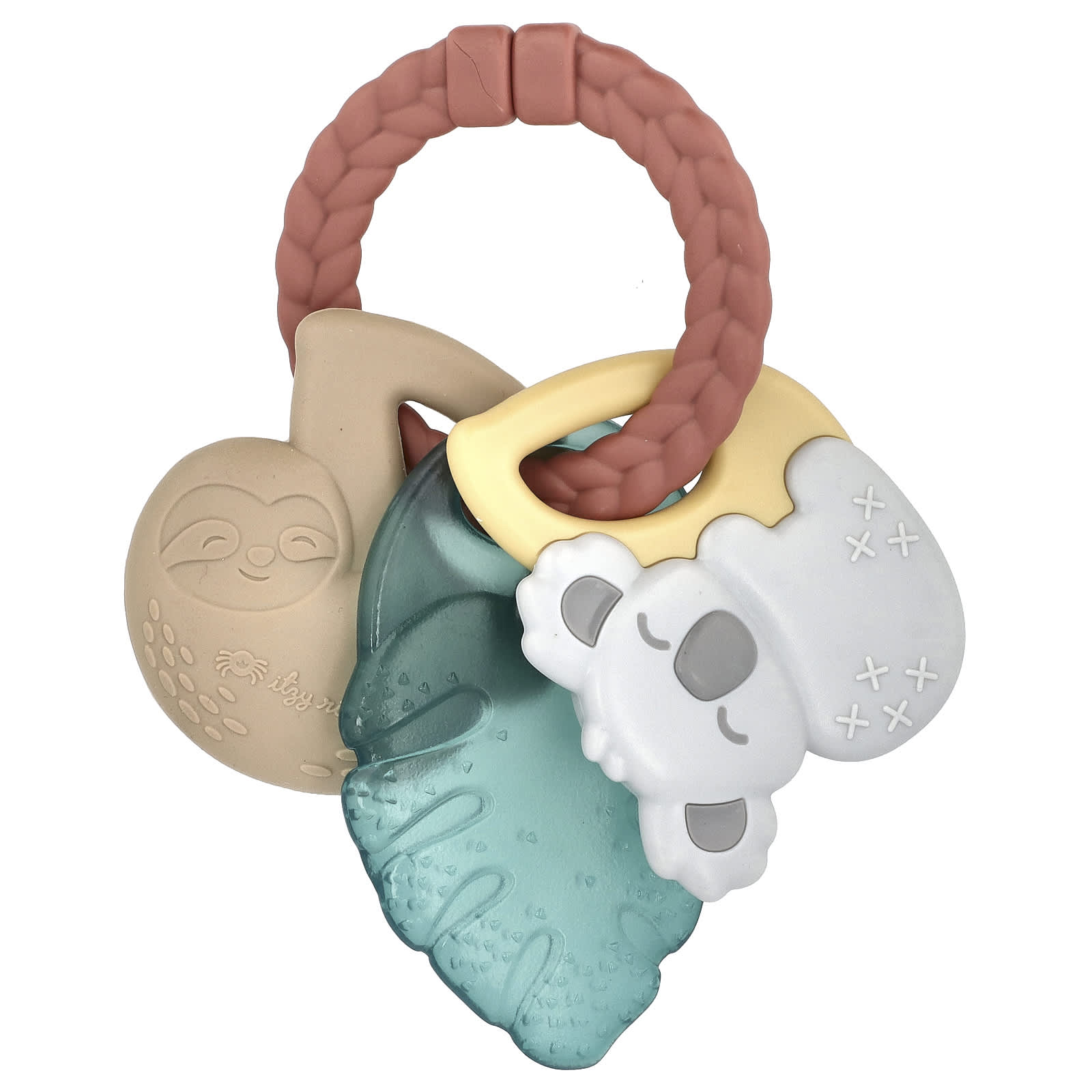 Itzy Keys™ — идеальный аккаунт для ребенка, когда прорезываются зубки! Наше текстурированное кольцо, с которым легко справиться ребенку, включает в себя силиконовый ленивец, заполненный водой лист и текстурированную коалу, которые помогут успокоить боль в деснах на разных этапах прорезывания зубов.