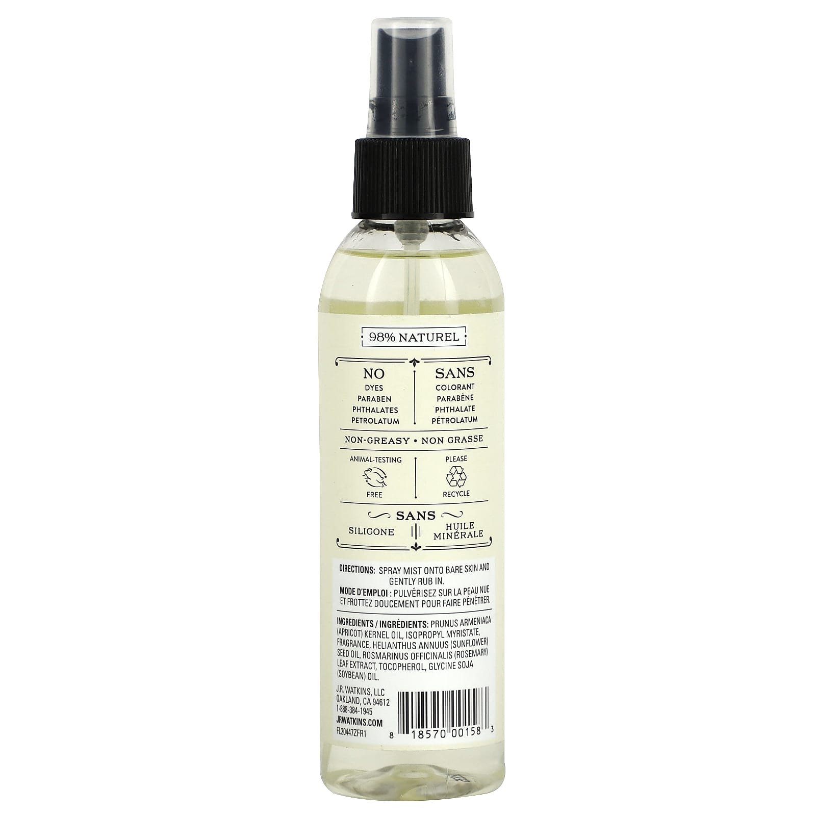 Масло из косточек абрикоса (Prunus armeniaca), изопропил миристат, отдушка, подсолнечное масло (Helianthus annuus), экстракт листьев розмарина (Rosmarinus officinalis), токоферол, соевое масло (Glycine soja).