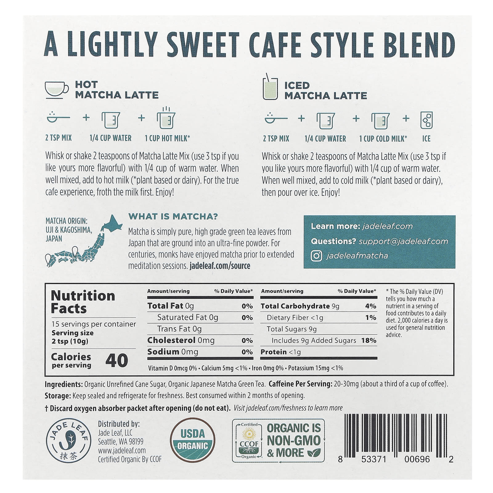 2 чайные ложки смеси для матча латте (используйте 3 ч. л., если хотите, чтобы вкус напитка был более насыщенным) взбейте венчиком или смешайте с 1/4 стакана тёплой воды. Хорошо перемешайте и добавьте в горячее молоко (* растительное или традиционное). Чтобы напиток был больше похож на кофе, сначала взбейте молоко. Наслаждайтесь!