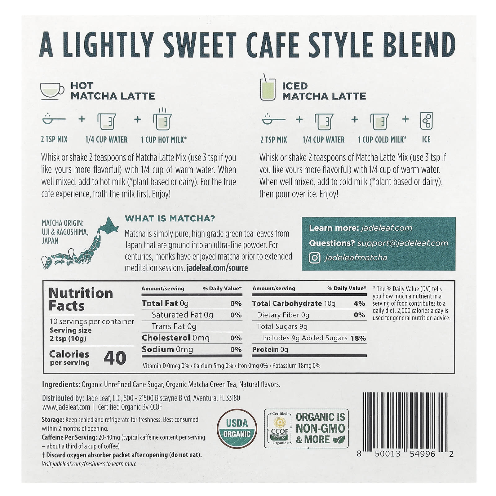 Органический нерафинированный тростниковый сахар, органический зелёный чай матча, натуральные ароматизаторы.