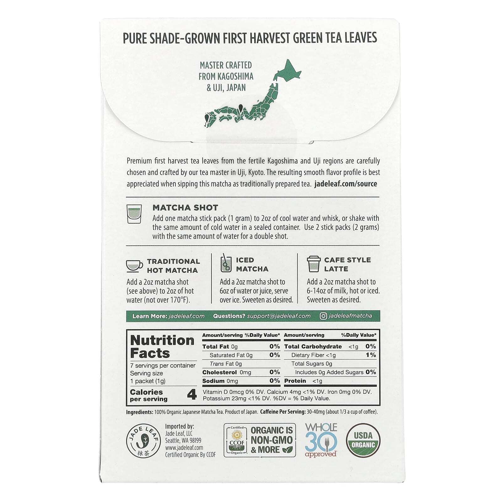Чайные листья первого сбора премиального качества из плодородных регионов Кагосима и Удзи тщательно отбираются и обрабатываются нашим мастером по производству чая из Удзи, Киото. Получаемый в результате мягкий вкус лучше всего ценится при употреблении этого матча как традиционного чая.