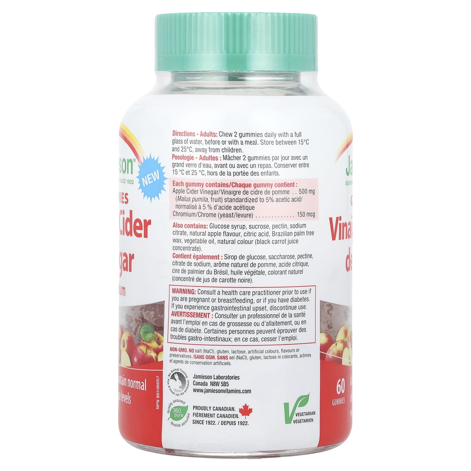 Жевательные таблетки из яблочного уксуса от Jamieson содержат хром, который помогает метаболизировать жиры и поддерживать здоровый уровень сахара (глюкозы) в крови в организме. Эти жевательные мармеладки доступны с забавным и восхитительным вкусом красного яблока.