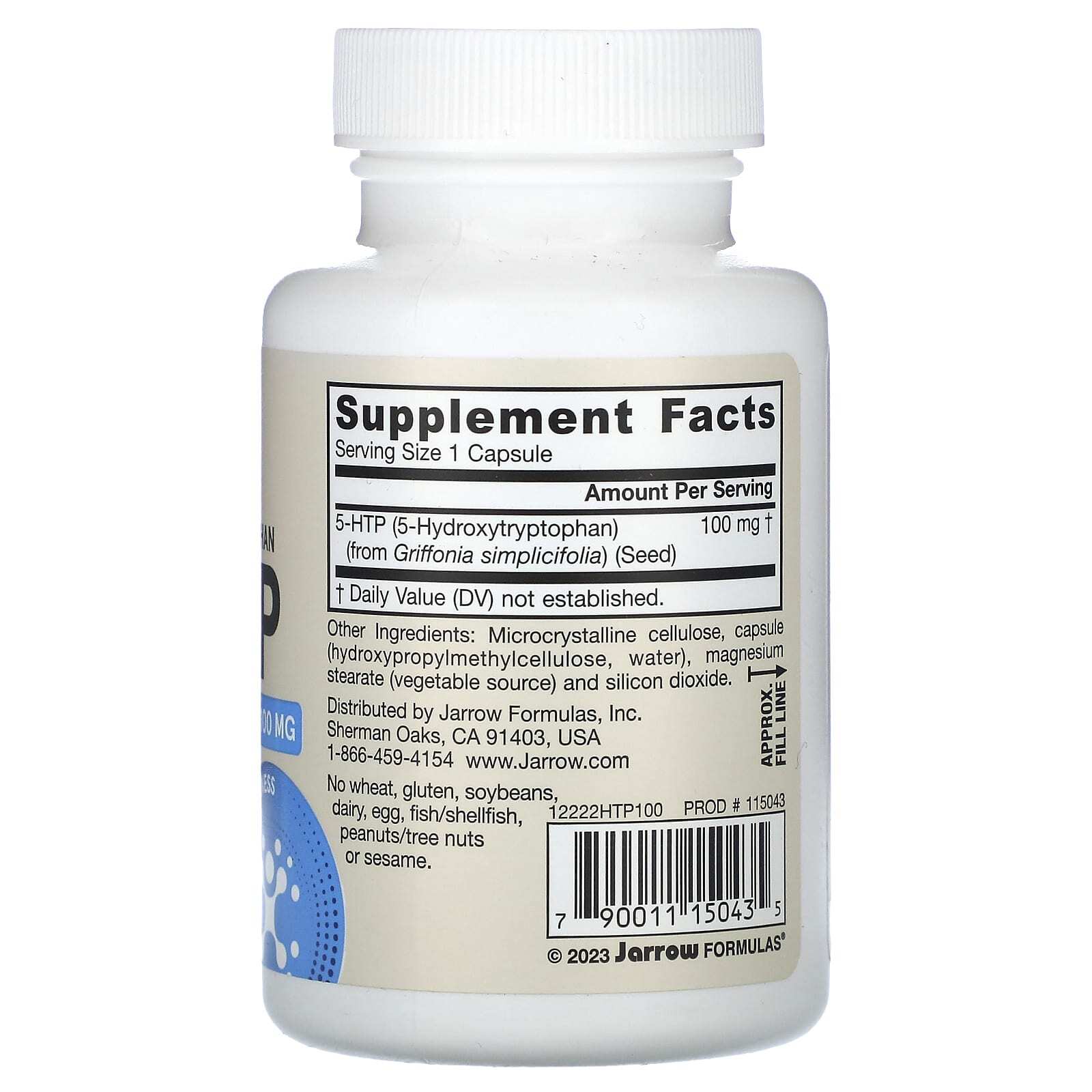 Jarrow Formulas, 5-гидрокситриптофан, 100 мг, 60 вегетарианских капсул
