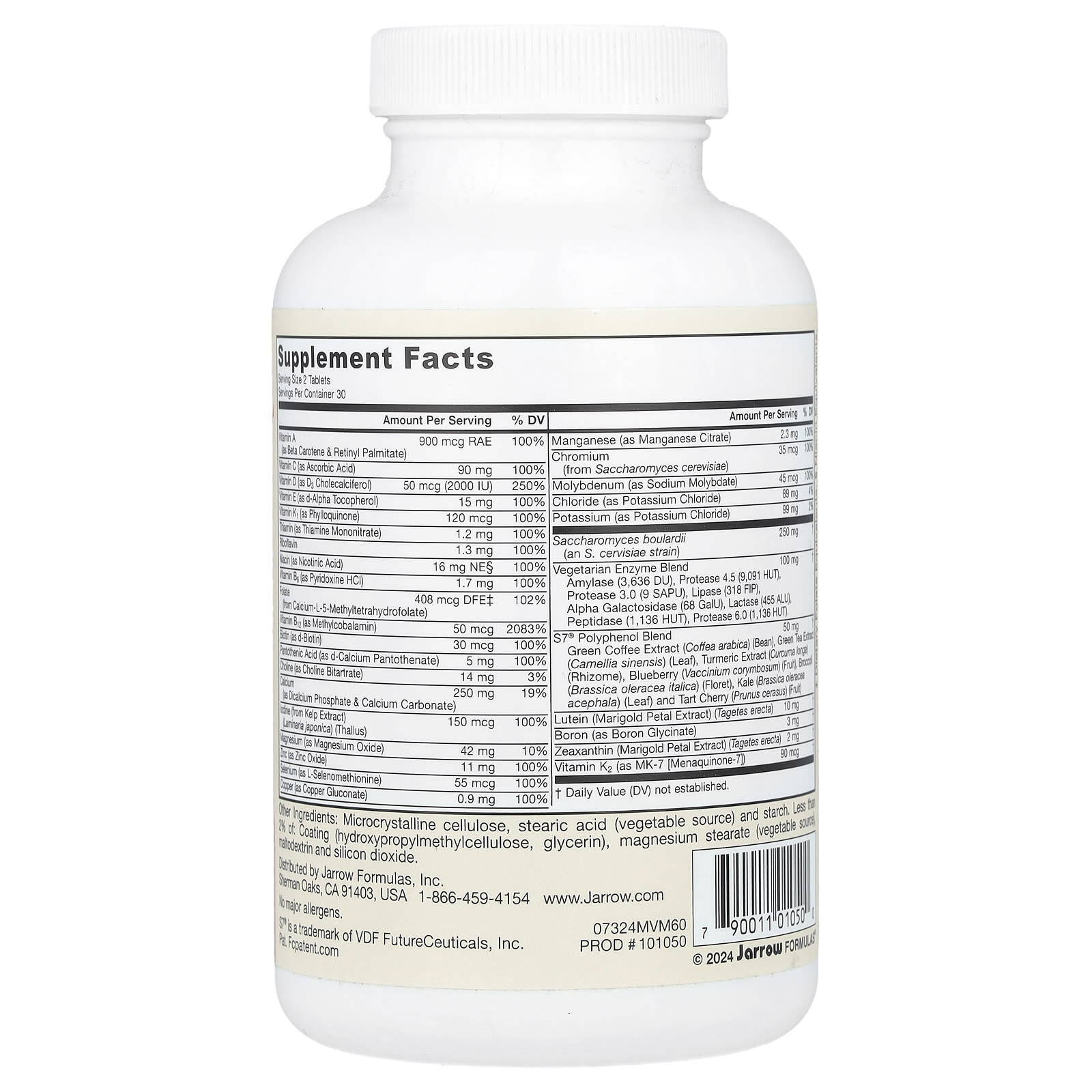 Микрокристаллическая целлюлоза, стеариновая кислота (растительного происхождения) и крахмал. Менее 2% следующих ингредиентов: оболочка (гидроксипропилметилцеллюлоза, глицерин), стеарат магния (растительного происхождения), мальтодекстрин и диоксид кремния.