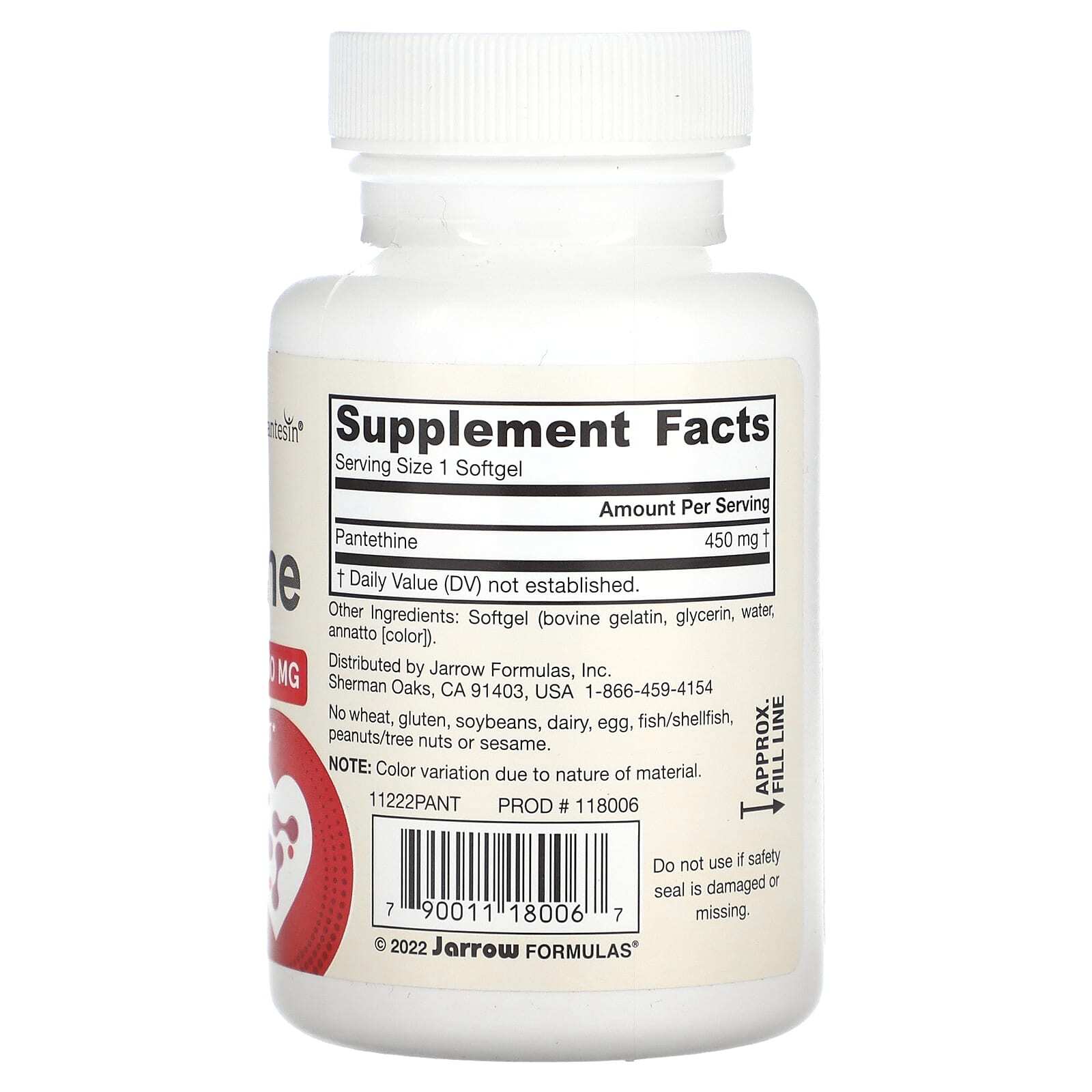 Пантетин от Jarrow Formulas® является производным пантотеновой кислоты (витамина B5) и прекурсором коэнзима А (CoA), важного кофактора липидного, углеводного и белкового метаболизма. В клетках CoA необходим для транспортировки и преобразования жирных кислот. Кроме того, пантетин помогает поддерживать здоровый липидный обмен.
