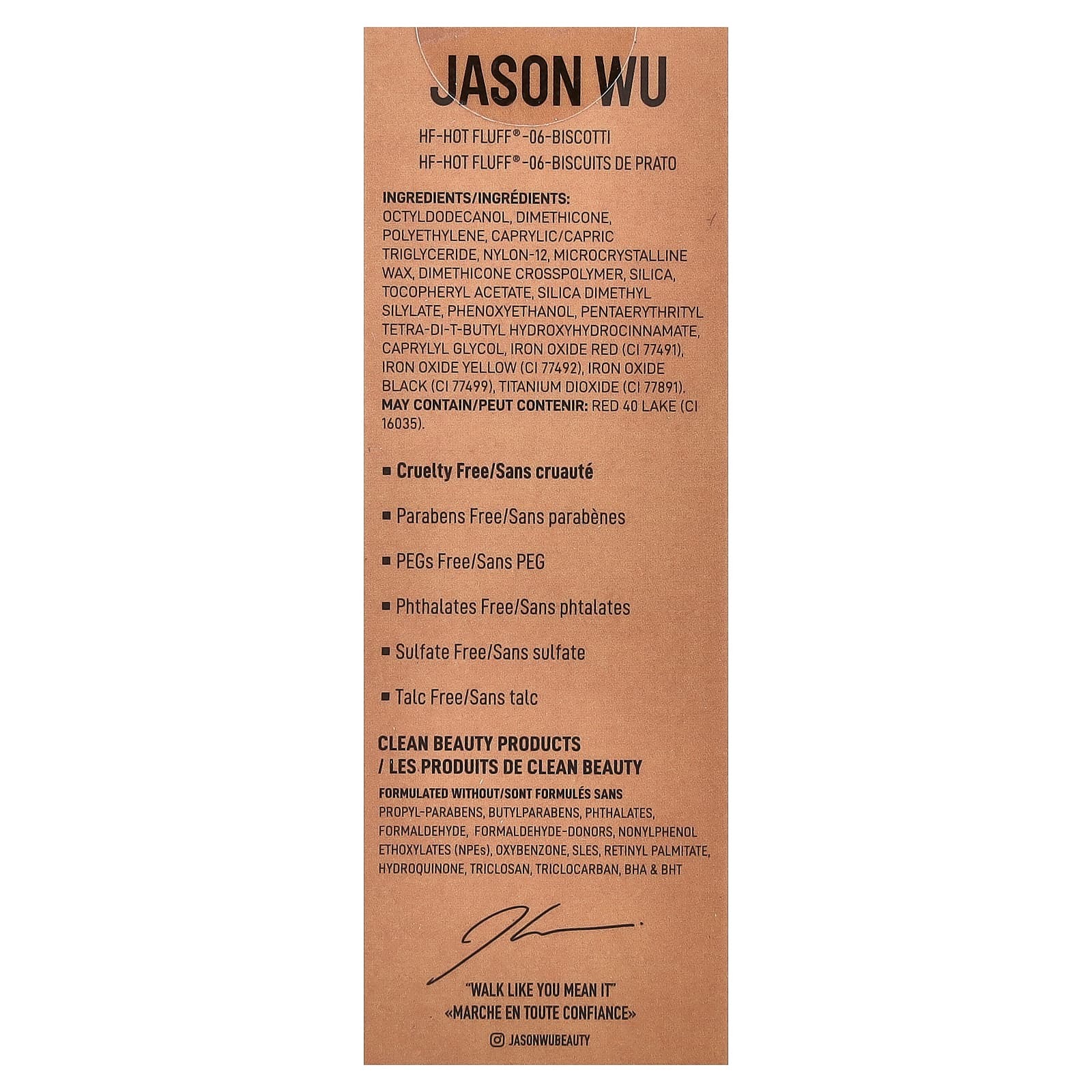Октилдодеканол, диметикон, полиэтилен, каприловый/каприновый триглицерид, нейлон-12, микрокристаллический воск, диметикон кроссполимер, диоксид кремния, токоферилацетат, диметил силилат диоксида кремния, феноксиэтанол, пентаэритритил тетра-ди-трет-бутил гидроксигидроциннамат, каприлилгликоль, оксид железа красный (CI 77491), оксид железа жёлтый (CI 77492), оксид железа чёрный (CI 77499), диоксид титана (CI 77891).