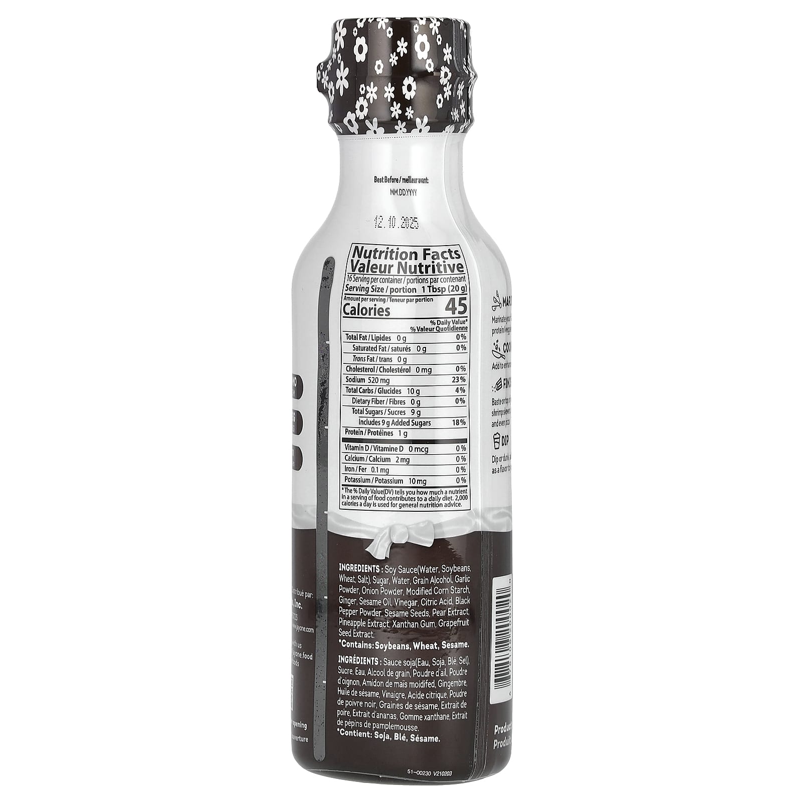 Соевый соус (вода, сою, пшеница, соль), сахара, вода, зерновой спирт, чесночный порошок, луковый порошок, модифицированный кукурузный крахмал, имбирь, масло семян кунжута, уксус, лимонная кислота, порошок черного перца, кунжута, экстракт груши, экстракт ананаса, ксантановая камедь, экстракт косточек грейпфрута.