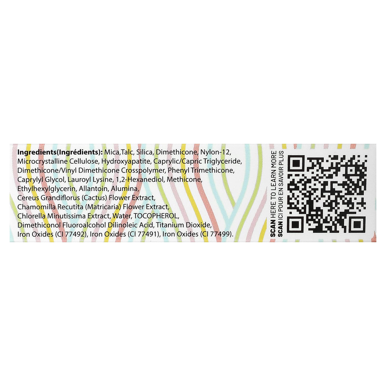 Слюда, тальк, диоксид кремния, диметикон, нейлон-12, микрокристаллическая целлюлоза, гидроксиапатит, каприловый, каприновый триглицерид, диметикон кроссполимер фенилтриметикон, каприлилгликоль, лаурил лизин, 1, 2-гександио, метикон, этилгексилглицерин, аллантоин, оксид алюминия, экстракт цветков кактуса (cereus grandiflorus), экстракт цветков ромашки (Chamomilla recutita), водный экстракт хлореллы (Chlorella minutissima), токоферол, диметиконол фторспирт дилинолевая кислота, диоксид титана, оксиды железа (CI 77492), оксиды железа (CI 77491), оксиды железа (CI 77499).