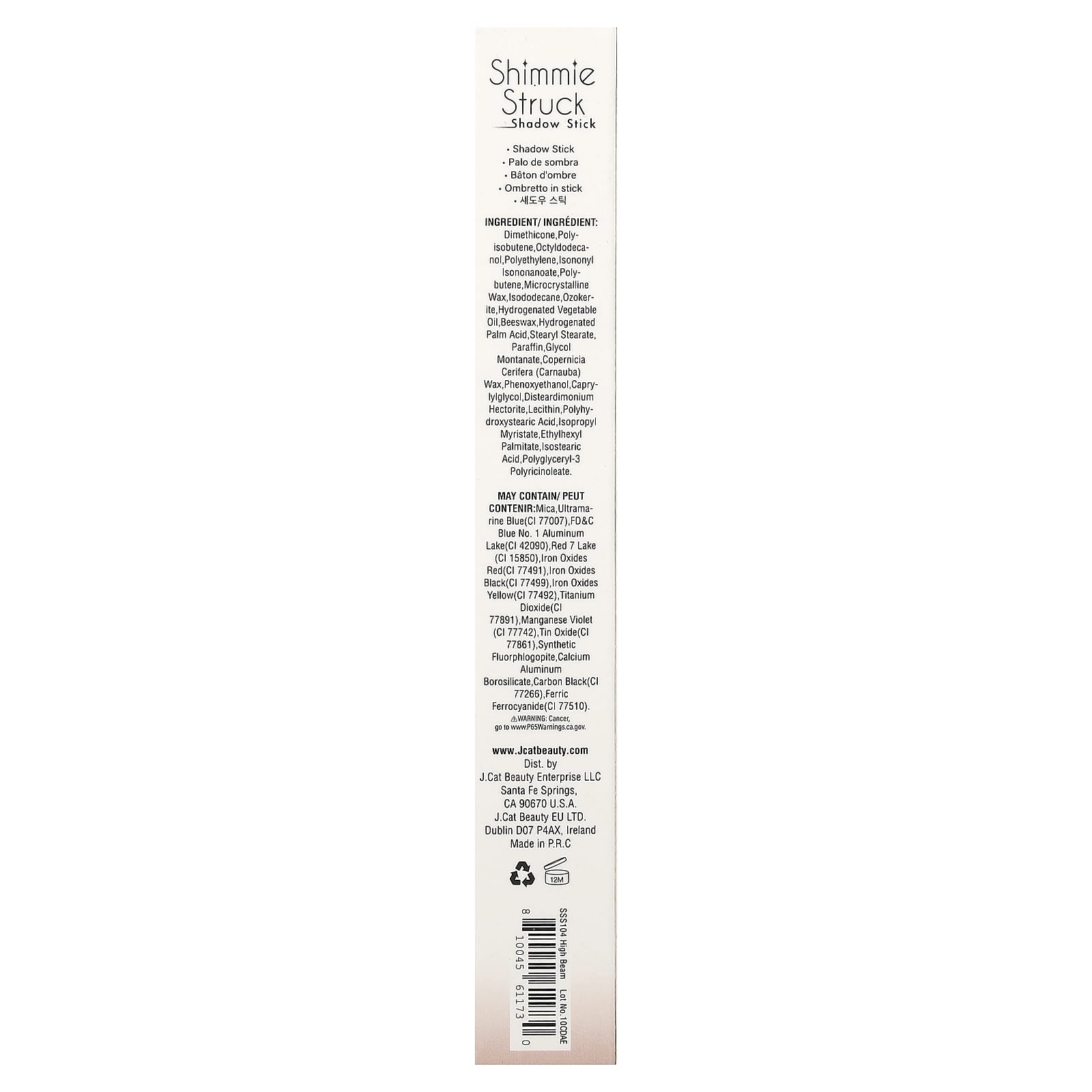 J.Cat Beauty, Shimmie Struck, стик для теней, SSS104 High Beam, 2 г (0,07 унции)