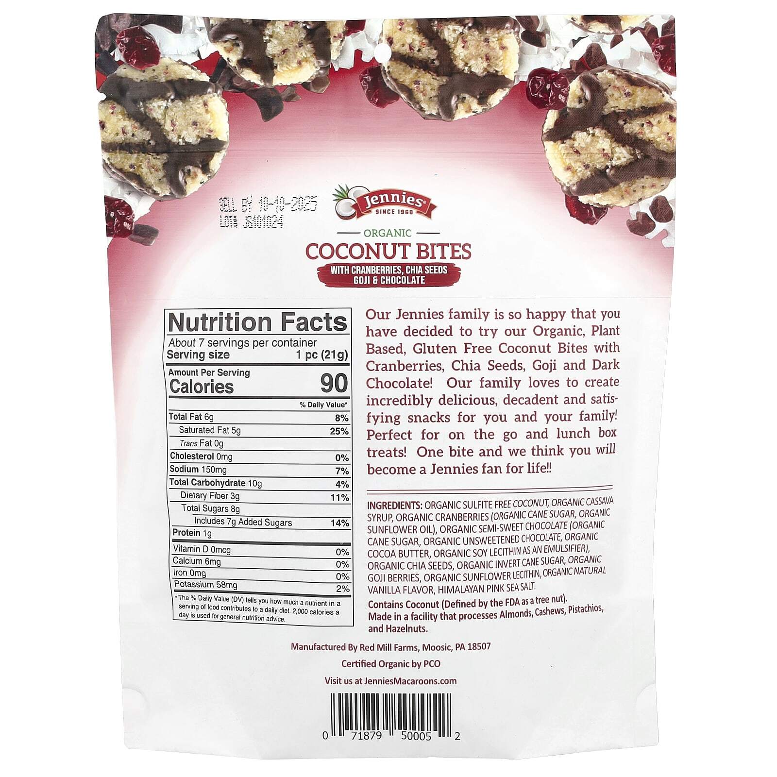 Наша семья Дженни так рада, что вы решили попробовать наши органические, растительные кокосовые кусочки без глютена с клюквой, семенами чиа, годжи и темным шоколадом! Наша семья любит создавать невероятно вкусные, декадентские и сытные закуски для вас и вашей семьи! Идеально подходит для еды и лакомств в дороге! Один укус, и мы думаем, что вы станете поклонником Дженни на всю жизнь!
