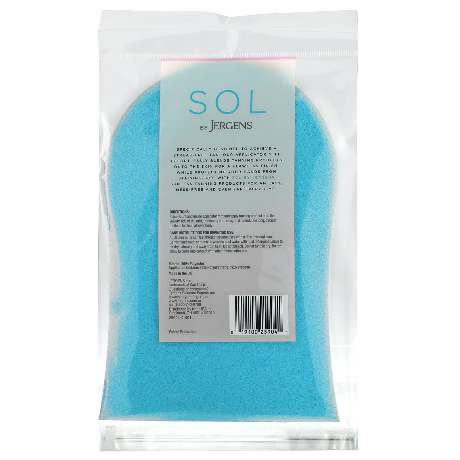 Поместите руку в варежку-аппликатор и нанесите средство для загара на бархатистую сторону рукавицы или непосредственно на кожу, как указано. Растушуйте все тело длинными круговыми движениями.