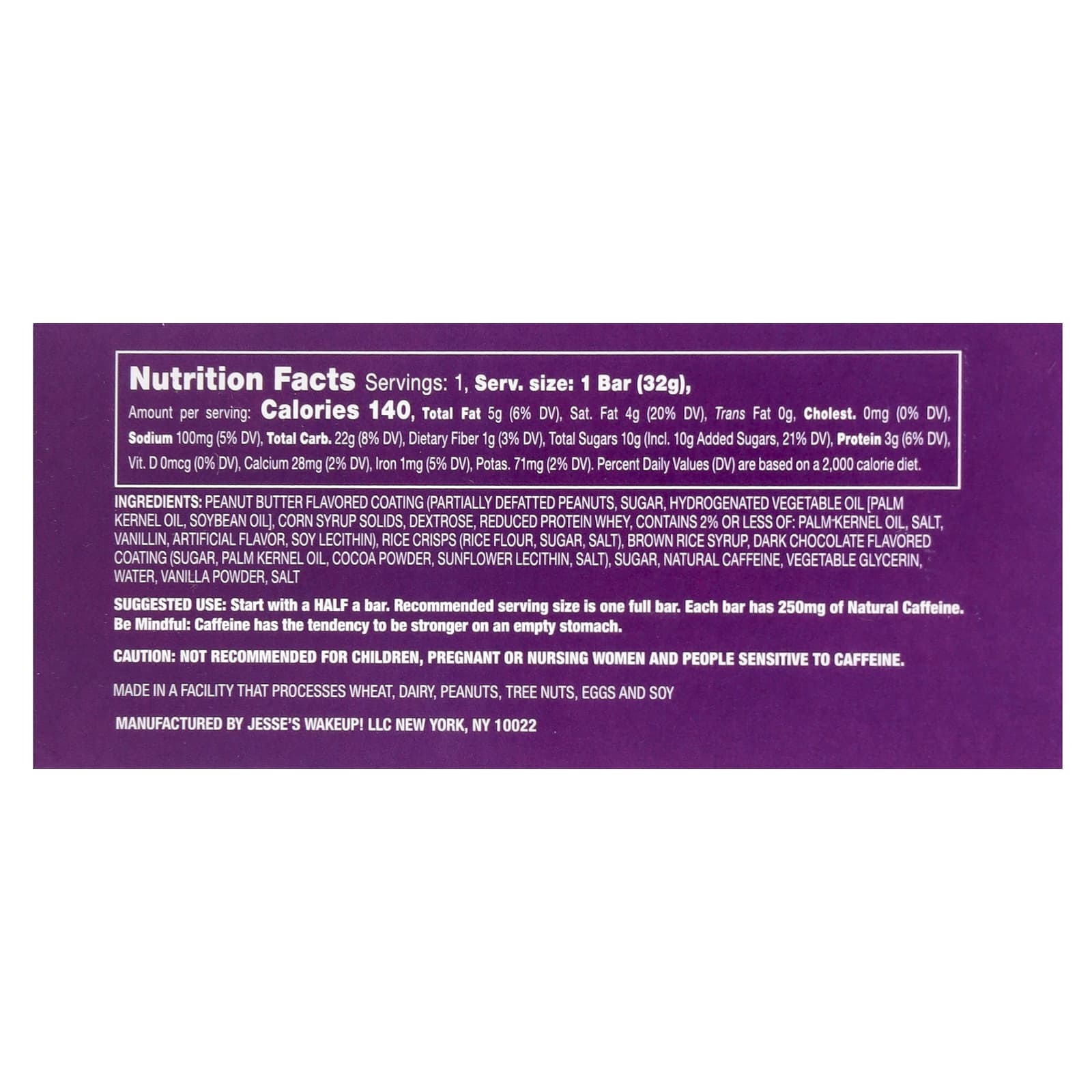 Пробуждение Джесси! Батончик - это рисовая хрустящая закуска с 250 мг кофеина растительного происхождения, созданная с одной целью: WakeUP! В любое время и в любом месте.