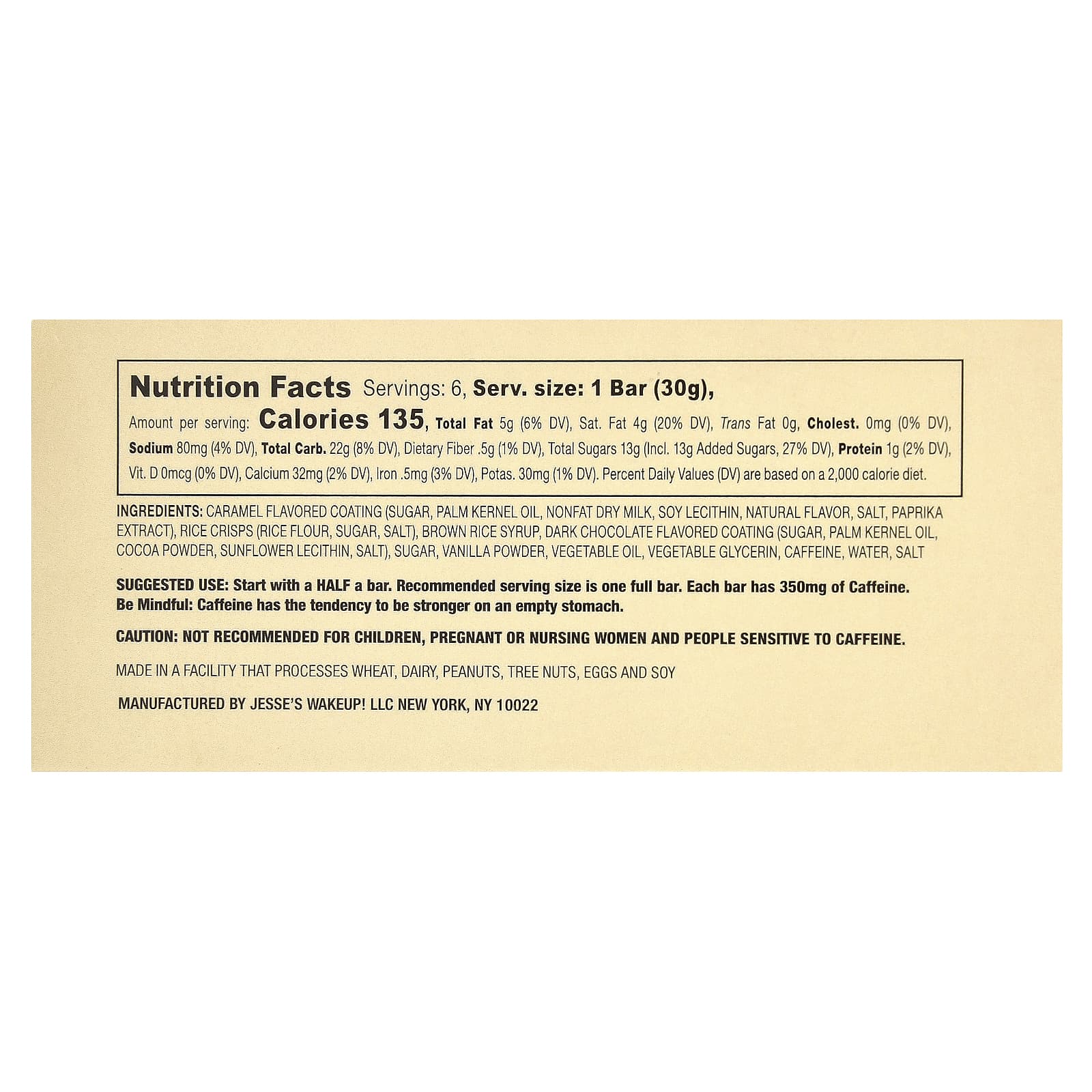 Пробуждение Джесси! Батончик - это рисовая хрустящая закуска с 350 мг кофеина растительного происхождения, созданная с одной целью: WakeUP! В любое время и в любом месте.