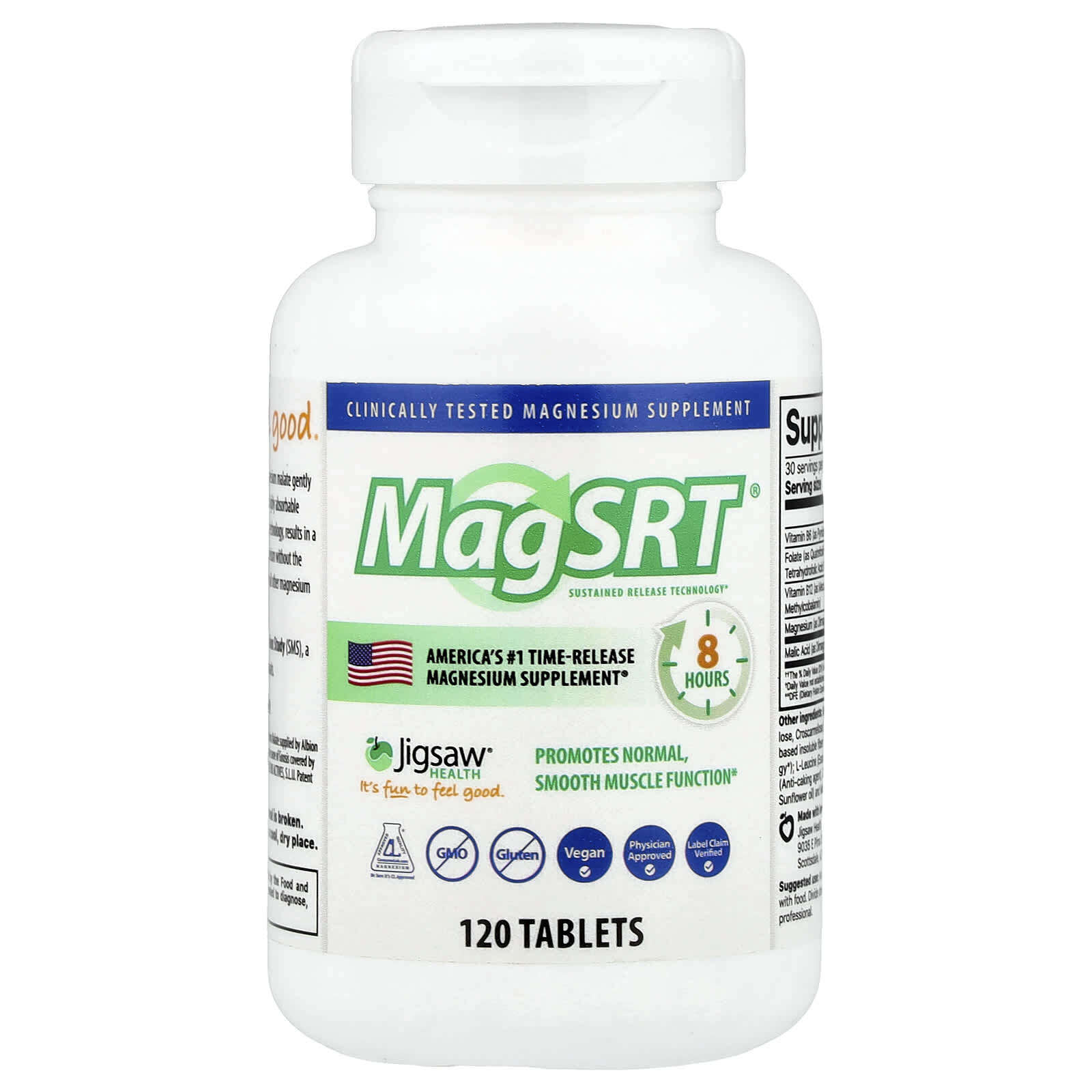 MagSRT® мягко высвобождает лучший запатентованный димагний малат Albion® в вашем организме в течение длительного периода времени. Этот хорошо усваиваемый магний в сочетании с технологией замедленного высвобождения обеспечивает продукт, который обеспечивает все преимущества магния для здоровья без общего дискомфорта в пищеварительной системе, связанного почти со всеми другими добавками с магнием.