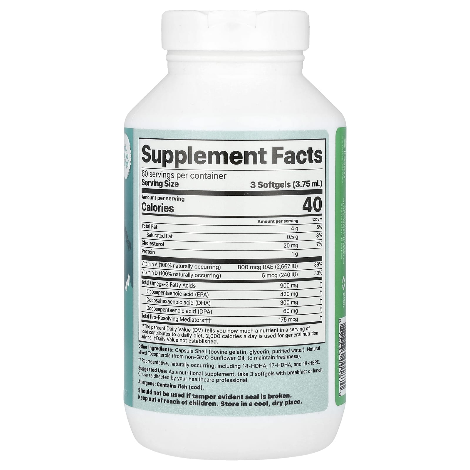 Jigsaw Alaskan Cod Liver Oil - это комплексная добавка из жира печени трески, содержащая омега-3 жирные кислоты, PRM (медиаторы, способствующие рассасыванию) и витамины A и D. PRM - это натуральные вещества, полученные из омега-3 жирных кислот, которые действуют как «тормозящие сигналы», изменяя поведение клеток и способствуя здоровому, нормальному функционированию клеток.