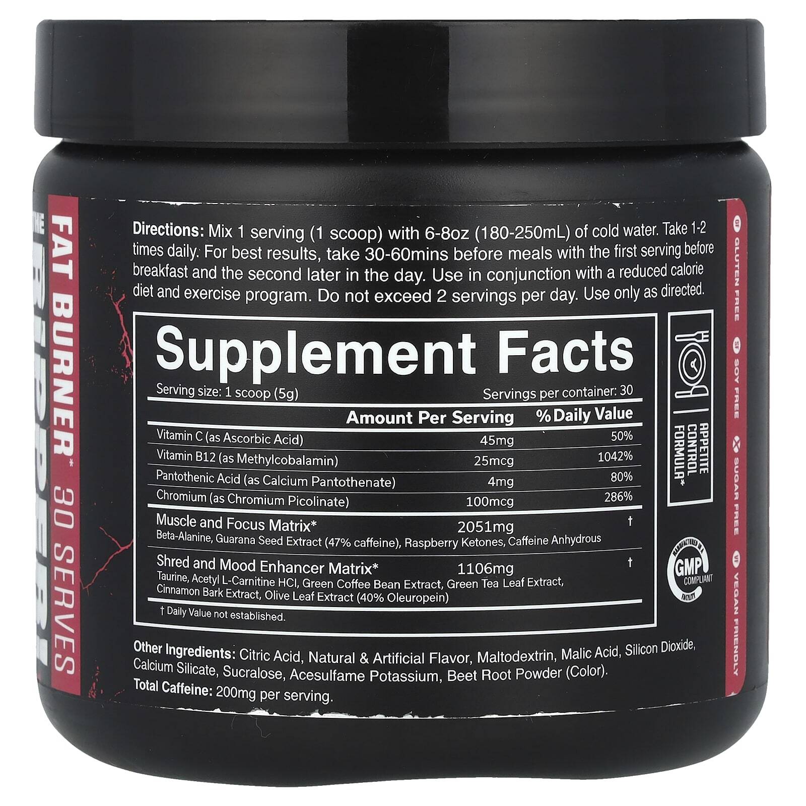| Ripper Shred Matrix Таурин, ацетил L-карнитина гидрохлорид, экстракт зеленых кофейных зерен, экстракт листьев зеленого чая, экстракт коры коричного дерева, экстракт листьев оливкового дерева (олеуропеин — 40%) | 1106 мг | † |