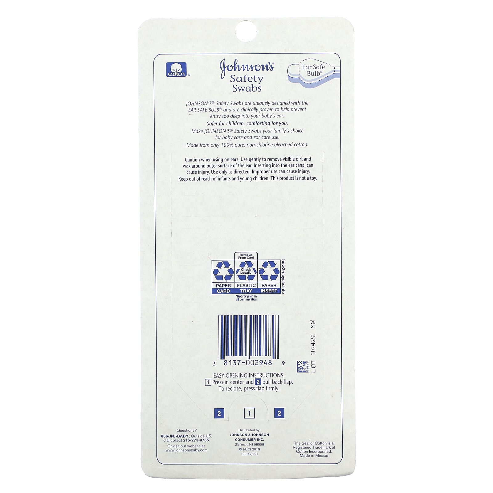 Безопасные тампоны Johnson® разработаны с использованием специальной лампочки EAR SAFE BULB® и, как было доказано клинически, предотвращают попадание в ухо ребенка слишком глубоко. Безопаснее для детей, комфортно для вас. Выбирайте безопасные мазки Johnson's® для всей семьи для ухода за детьми и средствами для ухода за ушами.