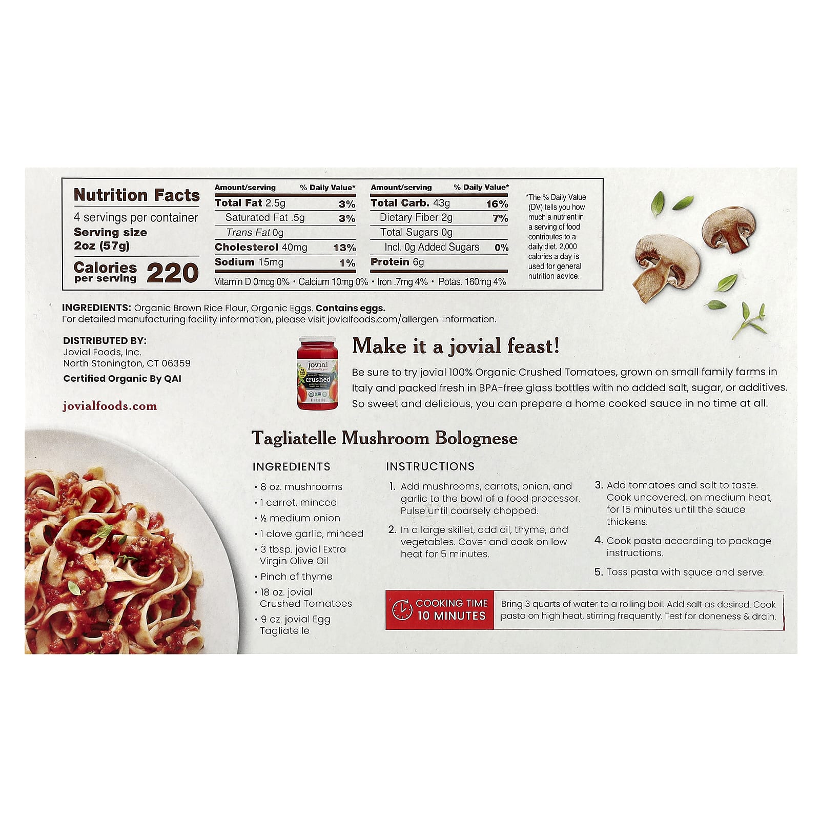 Jovial, Органическая паста из коричневого риса, яичный тальятелле, 255 г (9 унций)