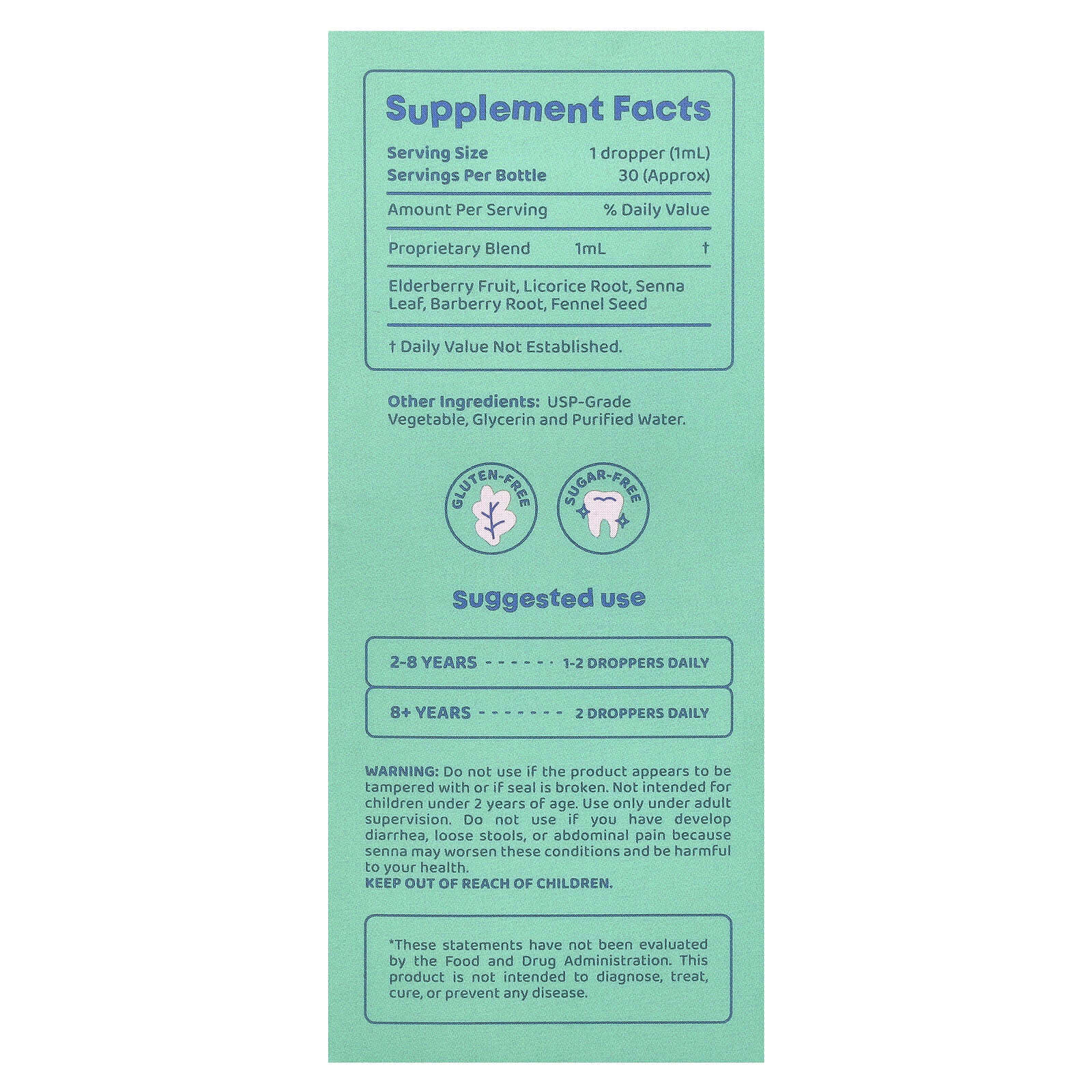 Не использовать, если на упаковке присутствуют следы вскрытия или защитная пленка повреждена. Не предназначено для детей младше 2 лет. Использовать только под присмотром взрослых. Не используйте сенну, если у вас диарея, жидкий стул или боли в животе, поскольку сенна может ухудшить эти состояния и нанести вред вашему здоровью.