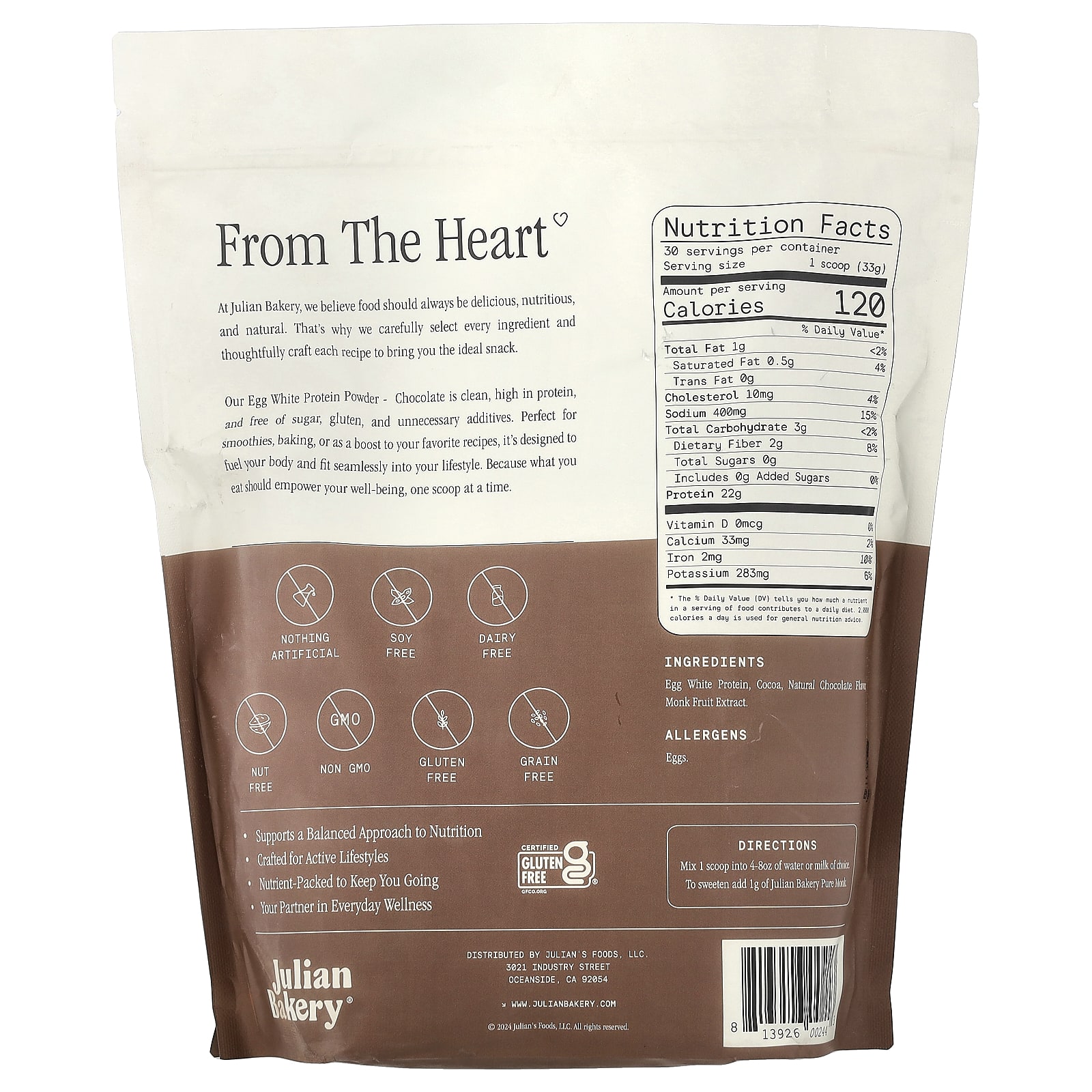 Julian Bakery, протеиновый порошок яичного белка, шоколад, 990 г (2,18 фунта)