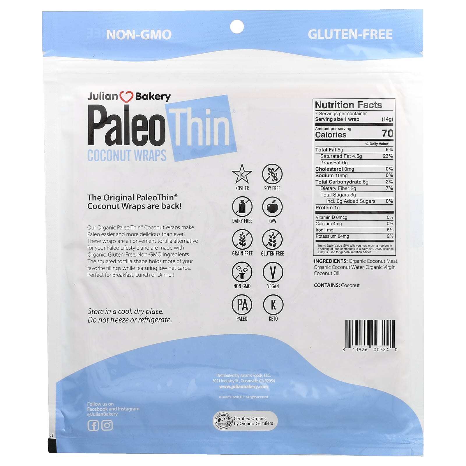Наши органические кокосовые обертки Paleo Thin® делают палео более простым и вкусным, чем когда-либо! Эти обертывания являются удобной альтернативой тортильи для вашего палеодиагностического образа жизни и изготовлены из органических ингредиентов без глютена и ГМО. Квадратная форма тортильи содержит больше ваших любимых начинок и содержит низкое содержание чистых углеводов. Идеально подходит для завтрака, обеда или ужина!
