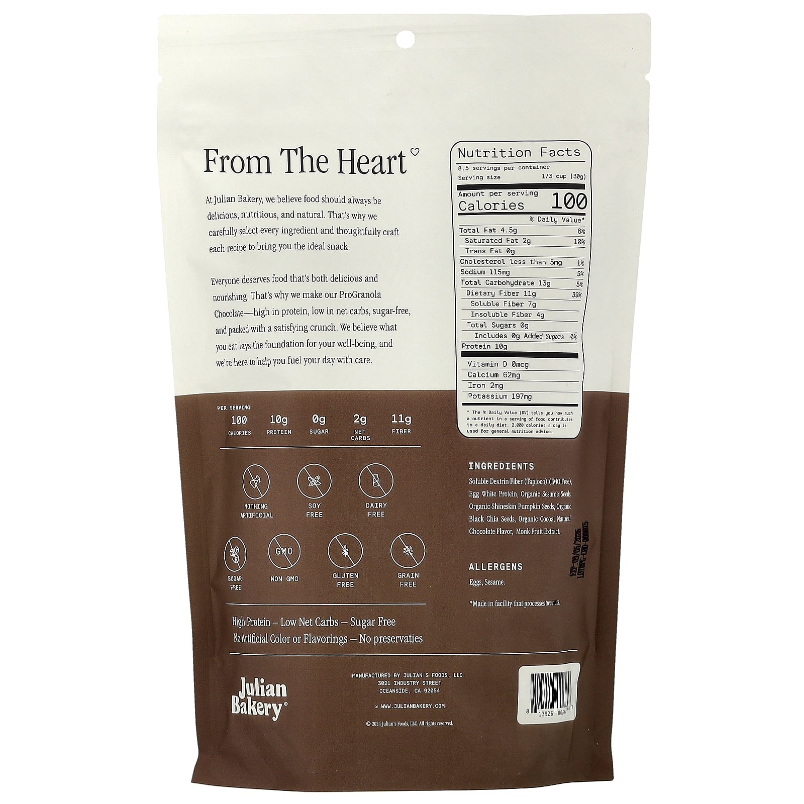 Julian Bakery, Pro Granola Clusters, шоколад, 255 г (9 унций)