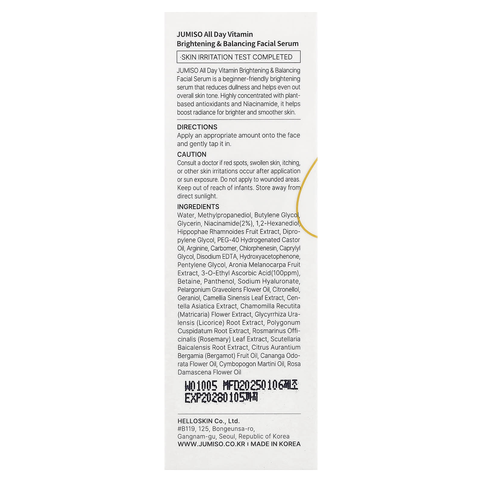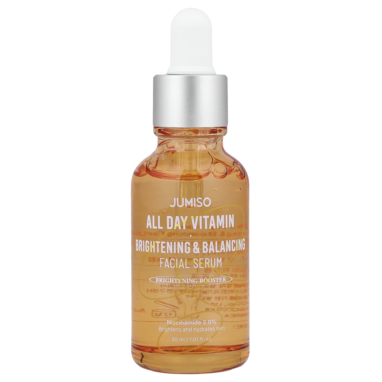 Осветляющая и восстанавливающая сыворотка для лица с витаминами JUMISO весь день — это осветляющая сыворотка, которая уменьшает тусклость и помогает выровнять тон кожи. Высококонцентрированный продукт с растительными антиоксидантами и никотинамидом помогает усилить сияние, делая кожу более яркой и гладкой.