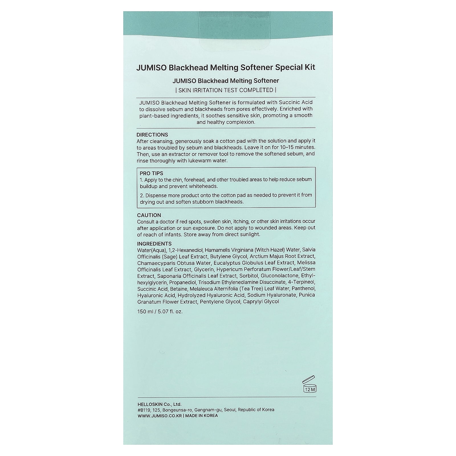 Смягчающее средство для против черных точек JUMISO содержит янтарную кислоту, которая эффективно растворяет кожный жир и черные точки в порах. Обогащенный растительными ингредиентами, он успокаивает чувствительную кожу, обеспечивая гладкий и здоровый цвет лица.