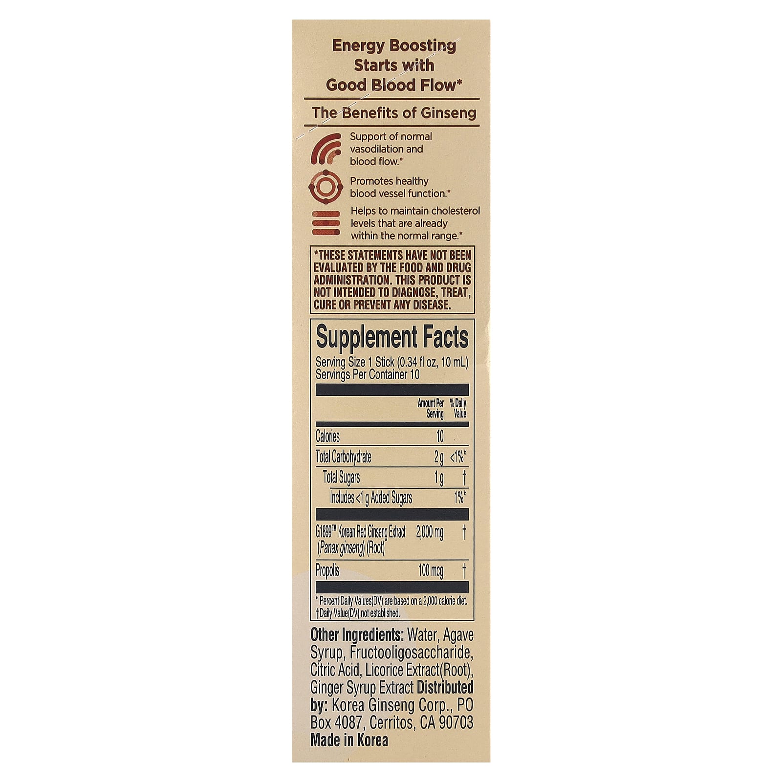 Перед применением добавки во время беременности, кормления грудью или приема препаратов следует проконсультироваться с медицинским работником. Убедитесь в отсутствии аллергии и побочных реакций на каждый ингредиент. Употребить сразу после открытия. Содержит экстракт корня корейского красного женьшеня, выращенного не более 6 лет. Хранить в сухом и прохладном месте, избегать попадания солнечных лучей и влаги. Может наблюдаться осадок, он абсолютно безвреден и не влияет на эффективность и качество средства. Не нагревайте стик в микроволновой печи. Осторожно используйте рваные края.