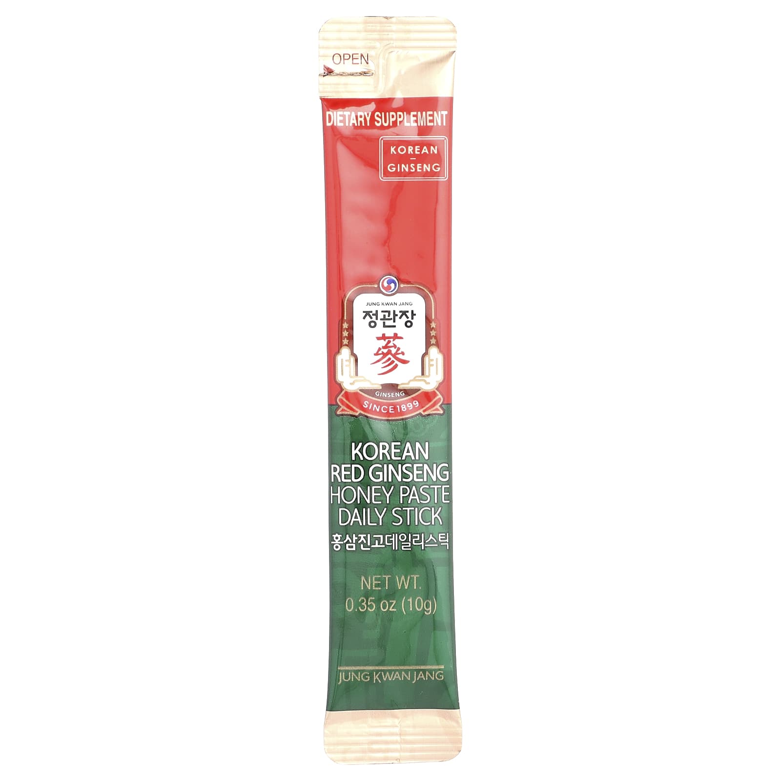 Ищете натуральный и здоровый способ быстро зарядиться энергией? Ежедневный стик от JungKwanJang Jin Go! Эта удобная энергетическая палочка, созданная на основе смеси корейского красного женьшеня, меда, экстракта грибов пории и корня ремании, поможет вам зарядиться энергией и сосредоточиться в дороге.