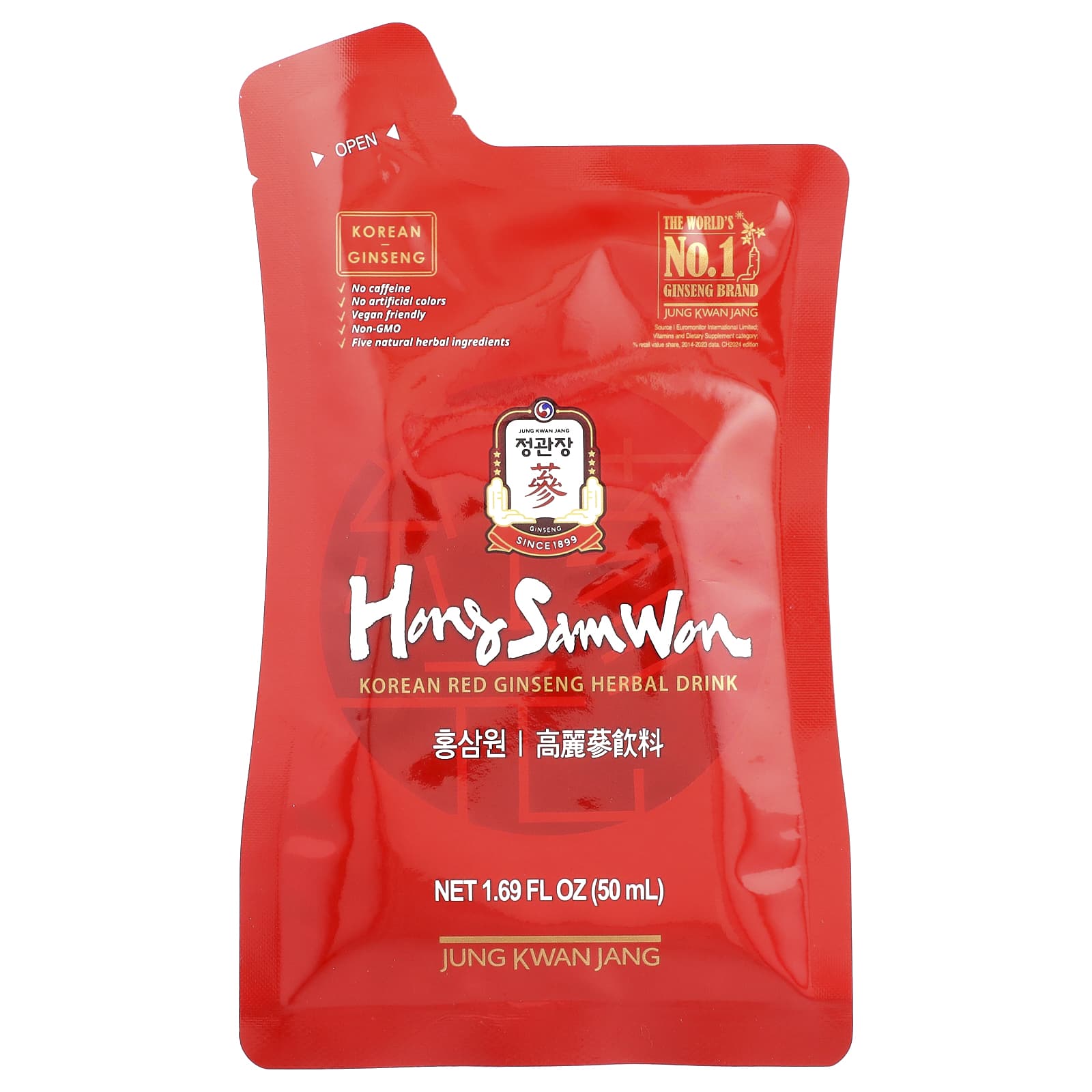 Корейский травяной напиток с красным женьшенем - это освежающий напиток в пакетиках без кофеина, приготовленный из экстрактов корейского красного женьшеня, корицы, имбиря, мармелада и ягод годжи.